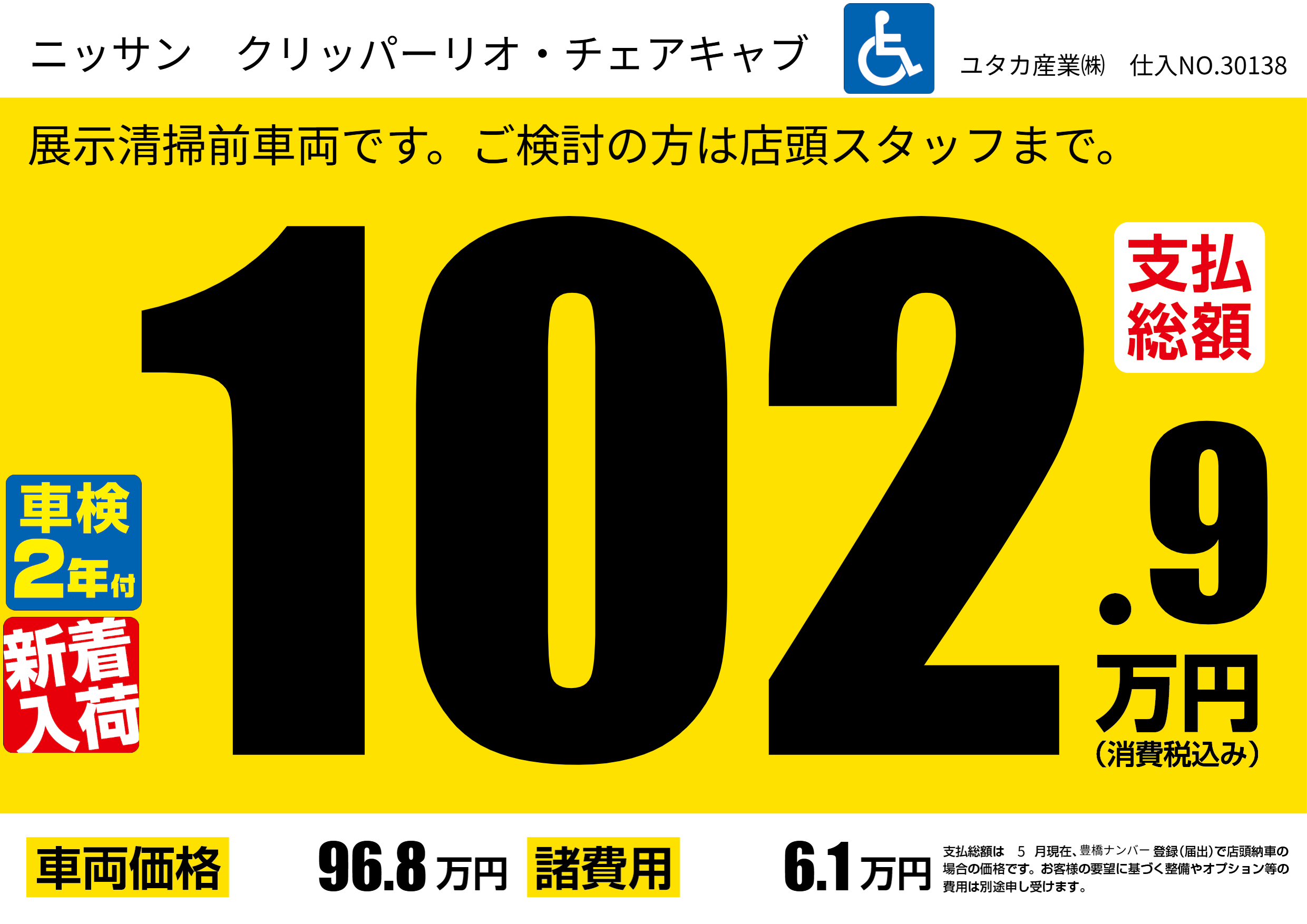 | 車名 | ニッサン クリッパーリオ・チェアキャブ | グレード ミッション 排気量 |