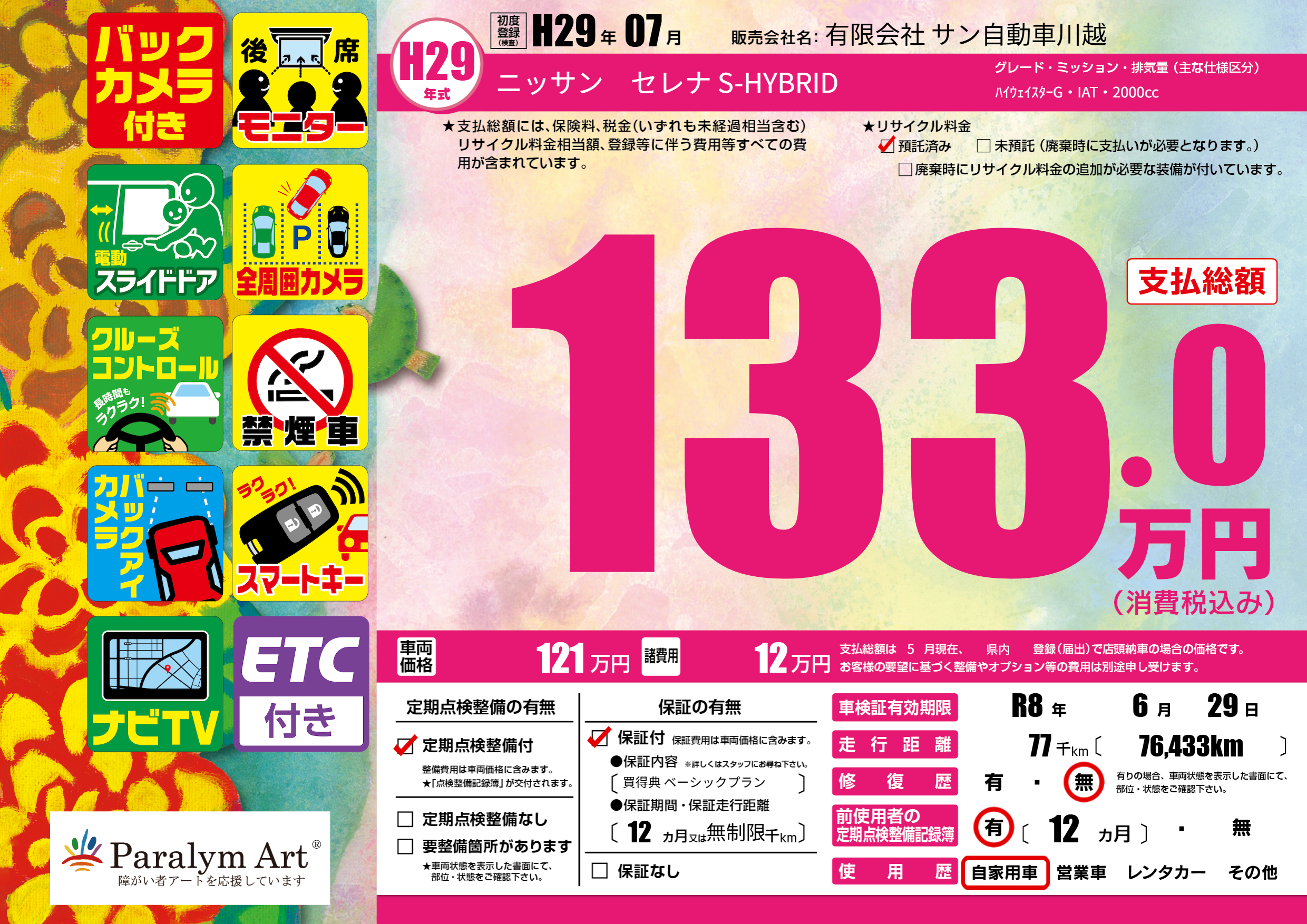 | 車名 | ニッサン セレナ S-HYBRID | グレード ミッション 排気量 |