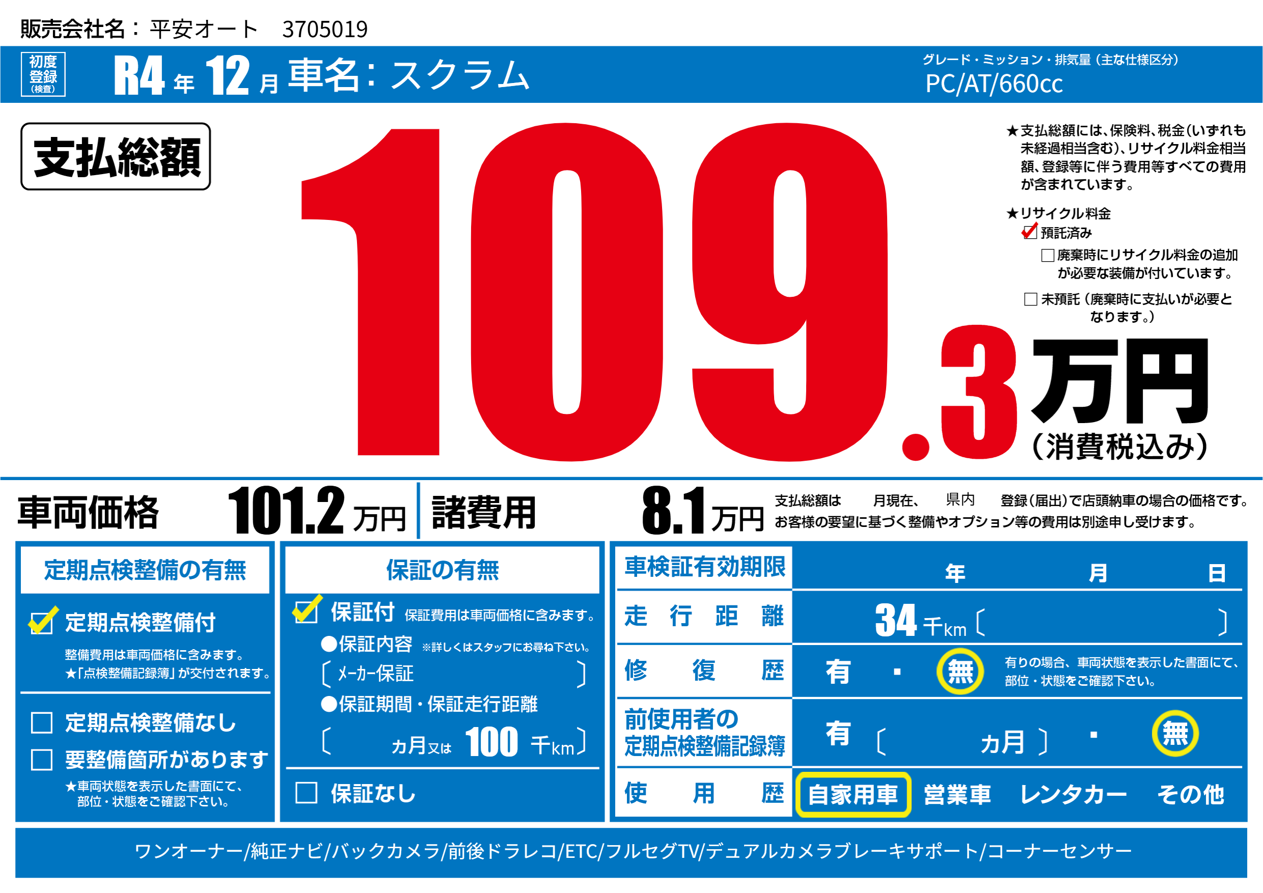| 定期点検整備 | 定期点検整備あり | ||