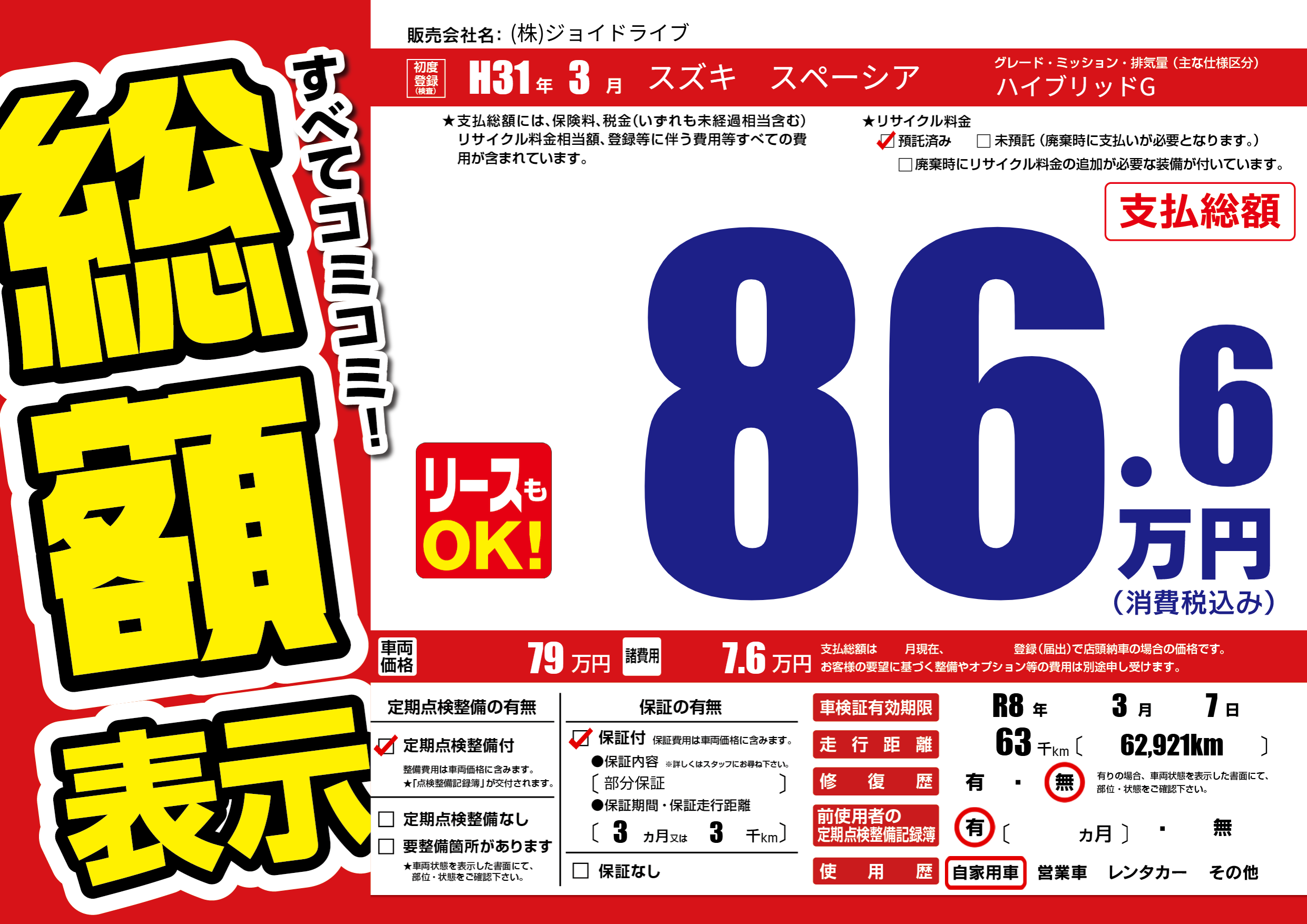 | 車検制限 | R8年 3月 7日 | ||