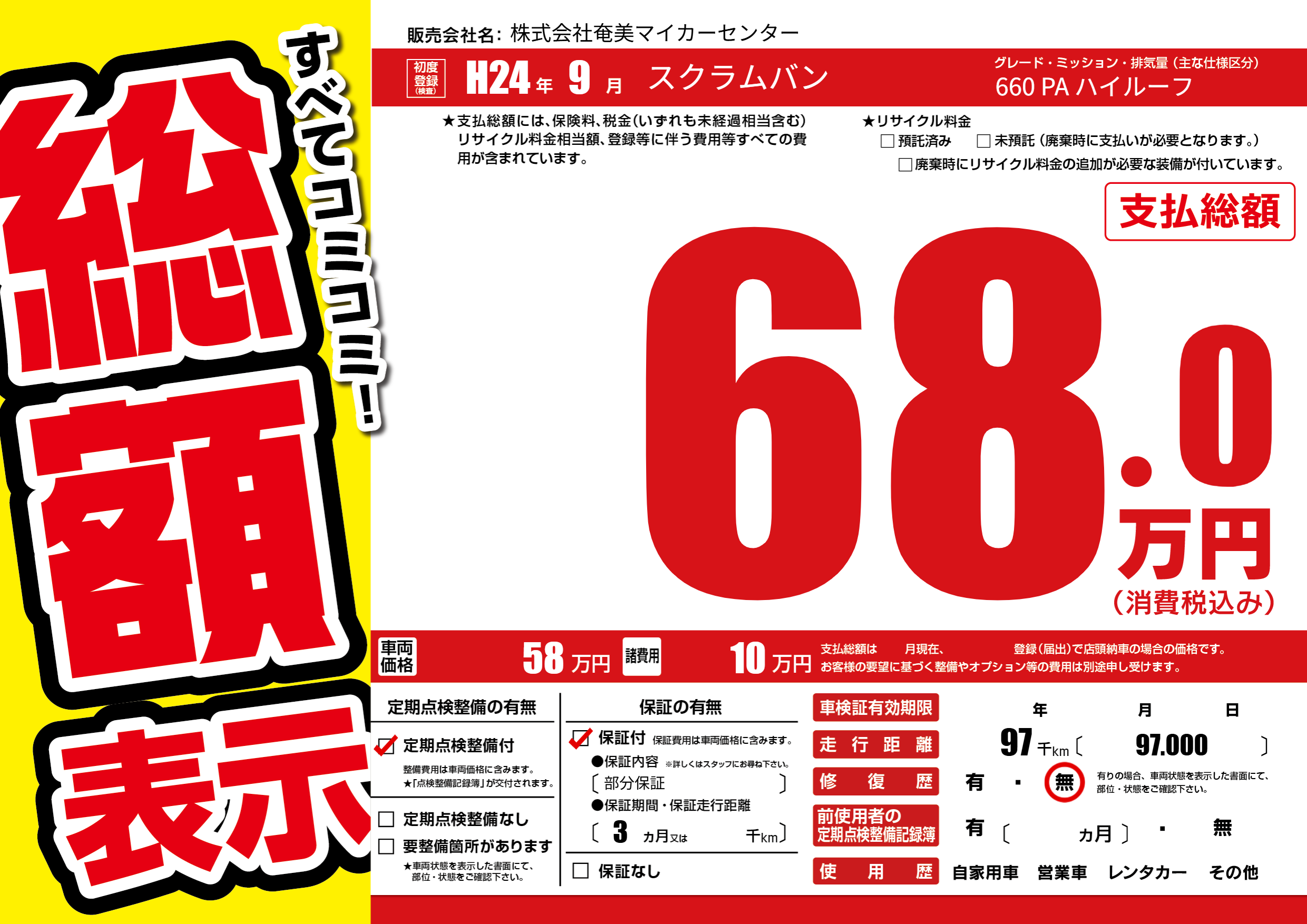 | 車名 | スクラムバン | グレード ミッション 排気量 |
