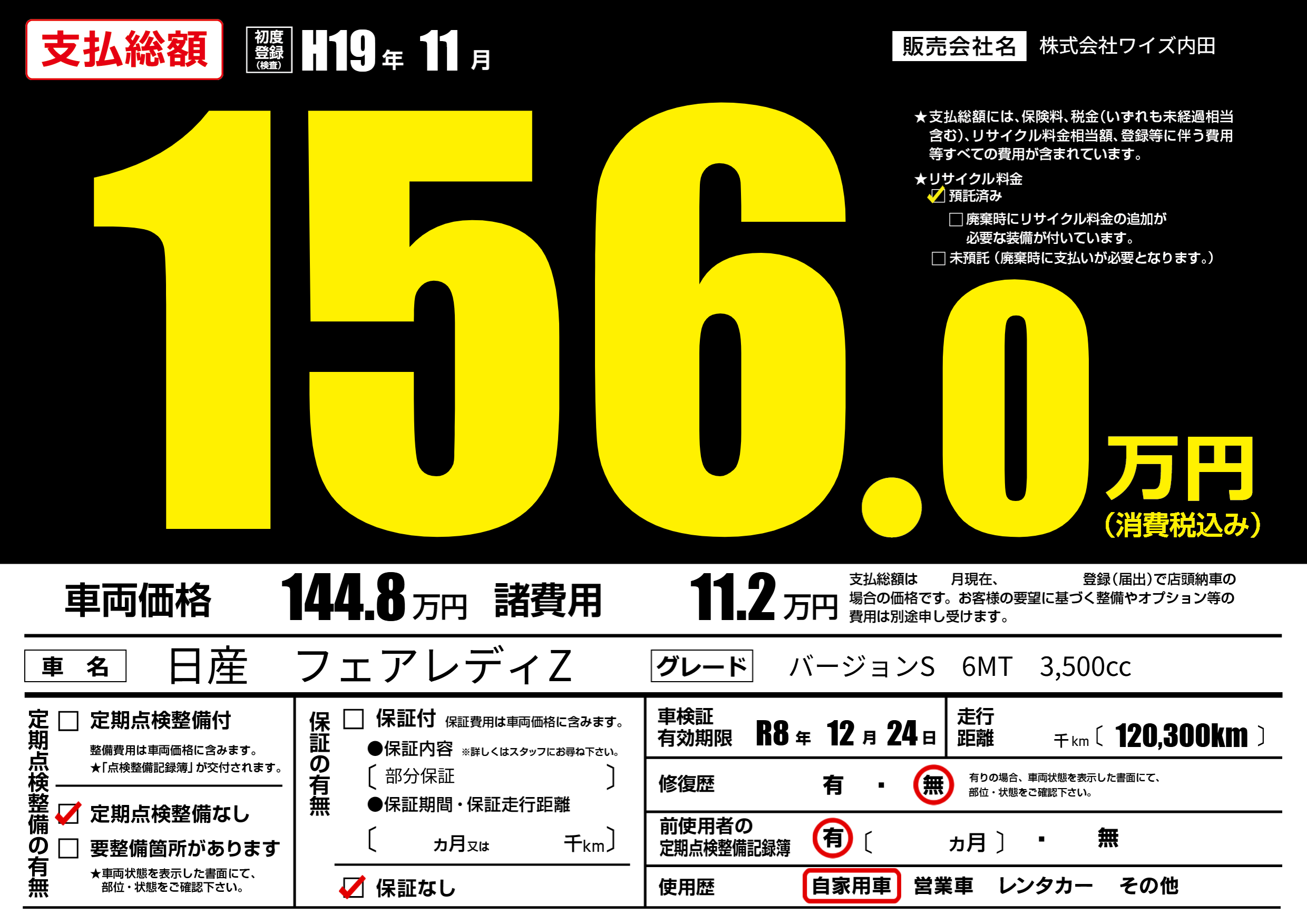 | 車名 | 日産 フェアレディZ | グレード ミッション 排気量 |