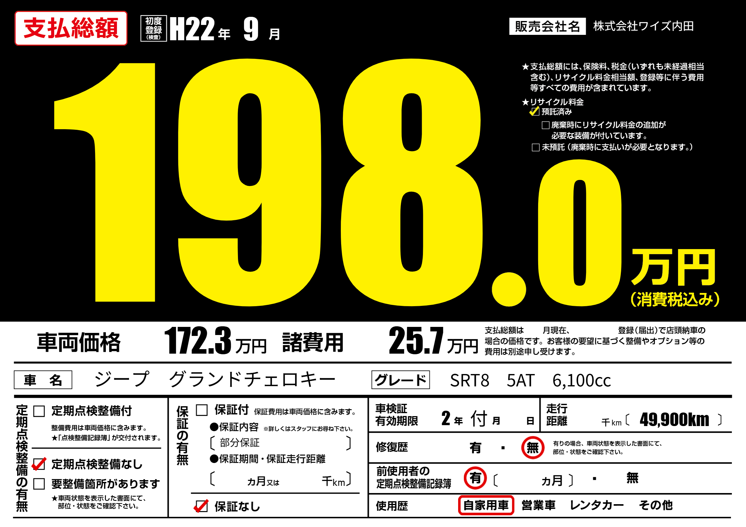 | 初年度登録 | H22年9月 | ||