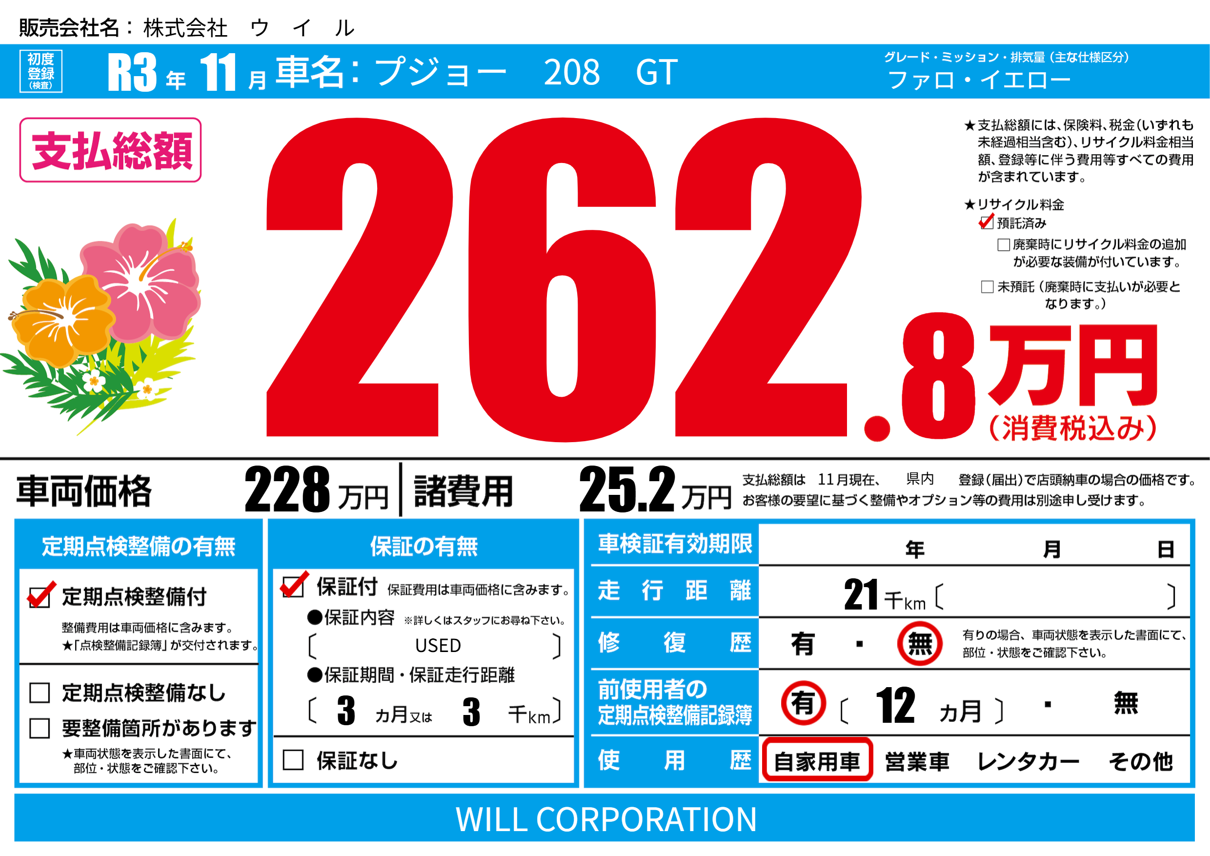 | 車名 | プジョー 208 GT | グレード ミッション 排気量 |