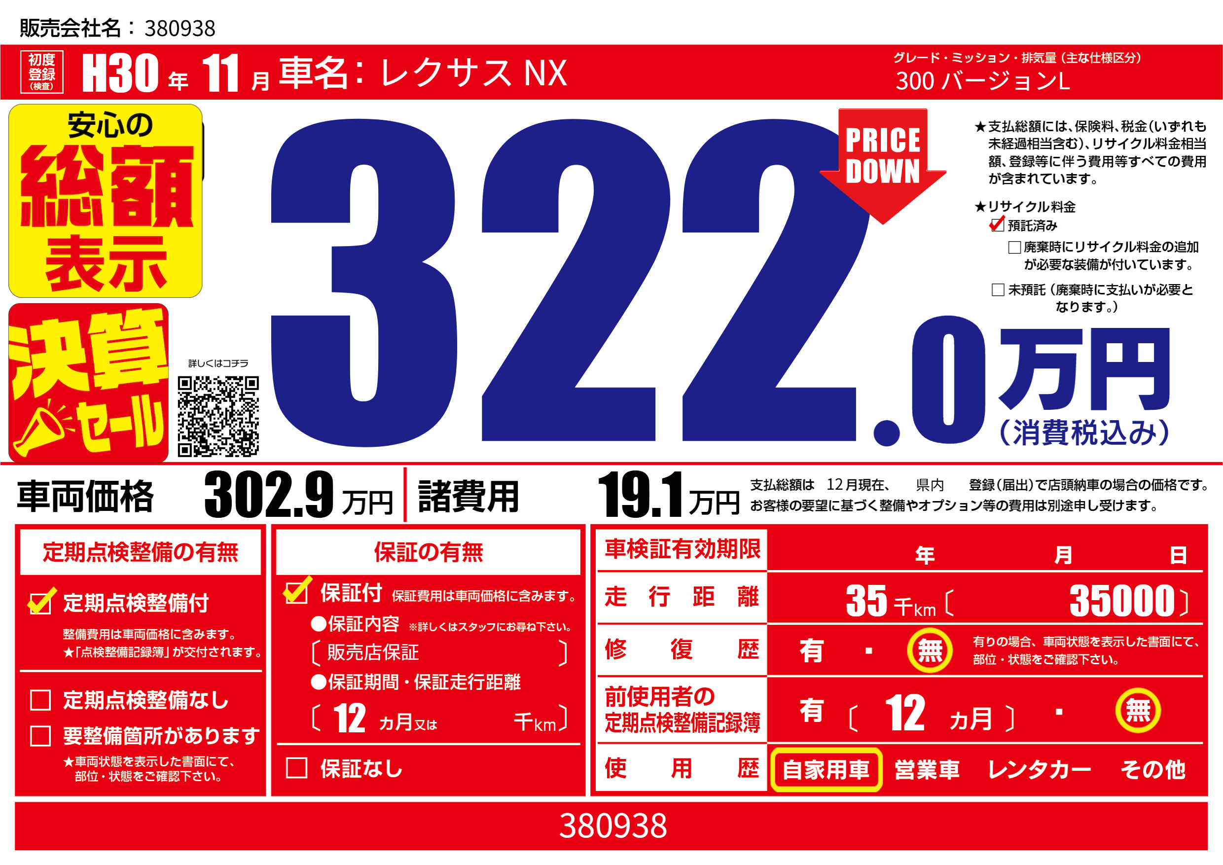 | 定期点検整備 | 定期点検整備あり | ||