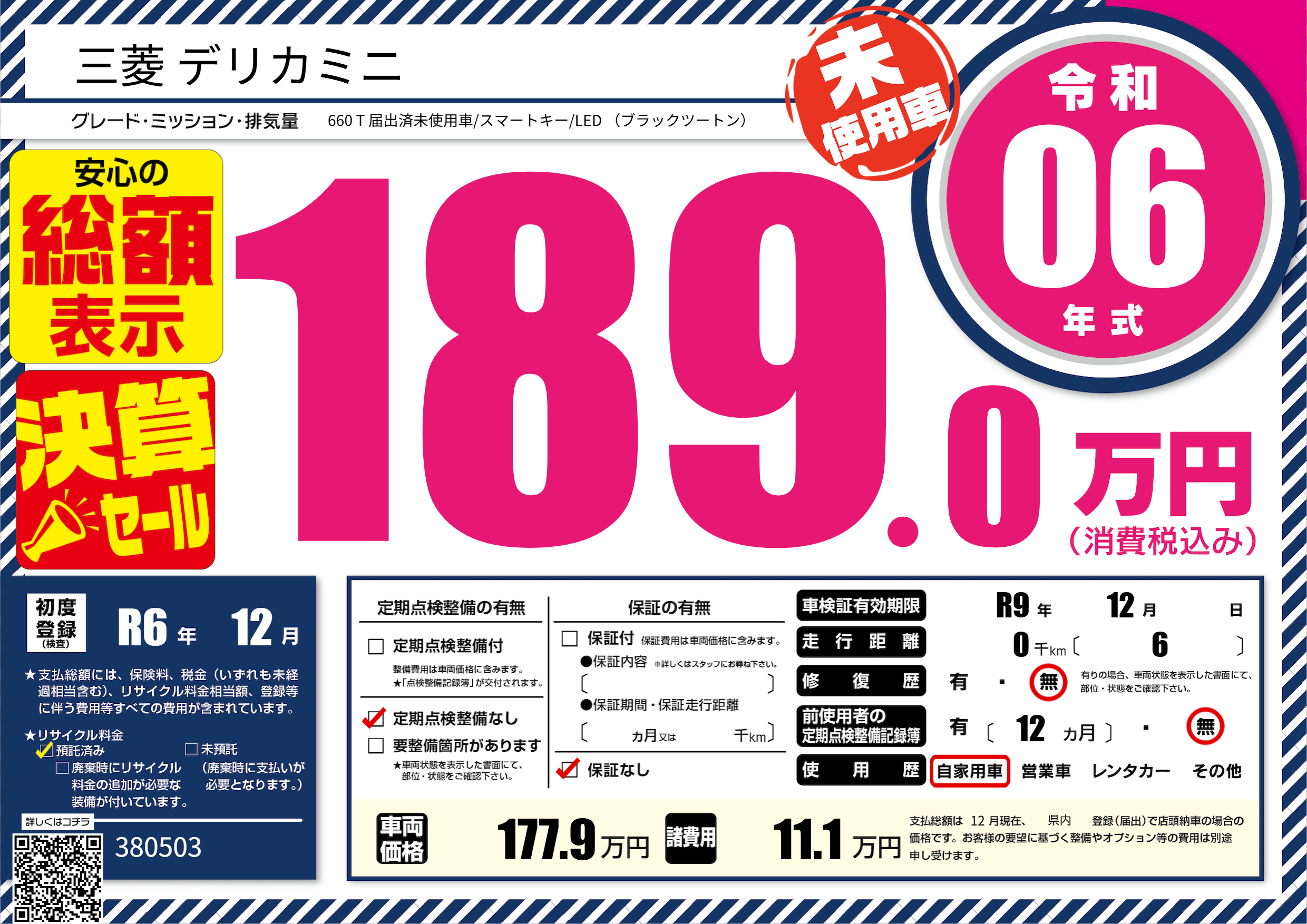 なし | 車検制限 | R9年12月---月 |