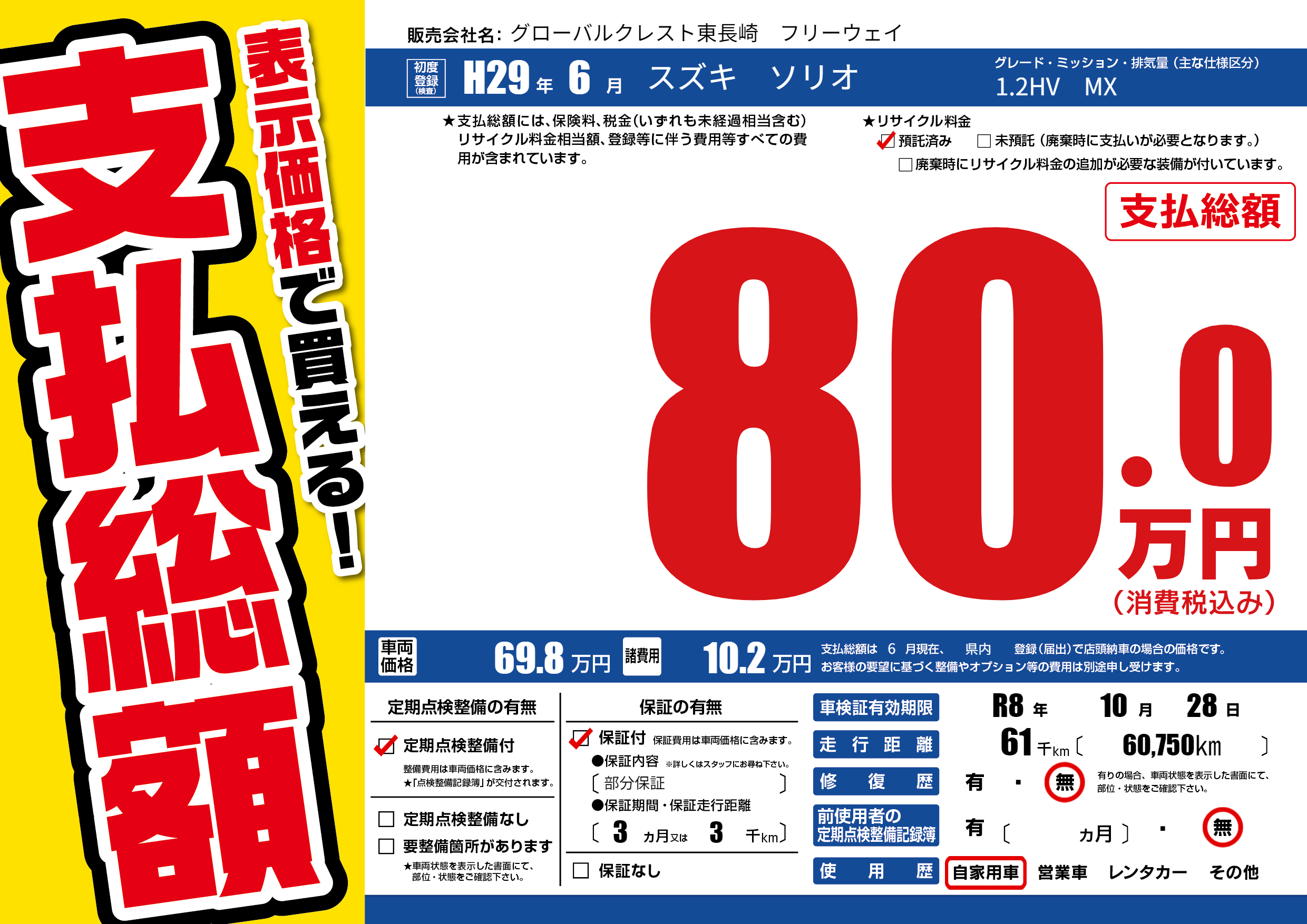 なし | 車検制限 | R8年10月28月 |