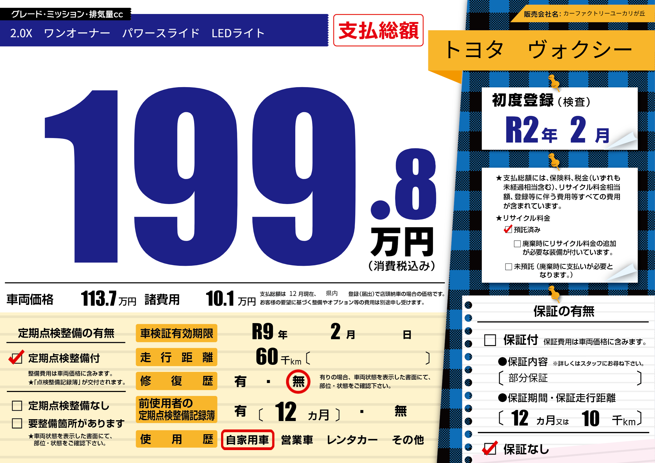 | 定期点検整備 | 定期点検整備あり | ||