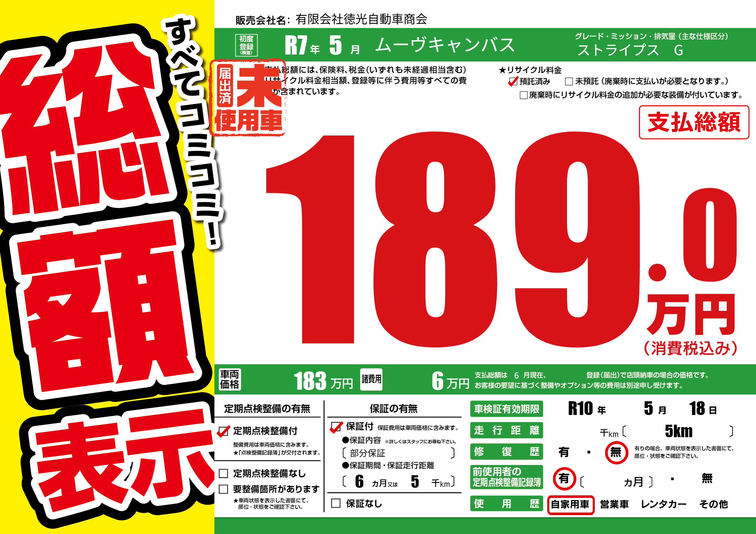 | 走行キロ | - | 初年度登録 | R7年5月 |