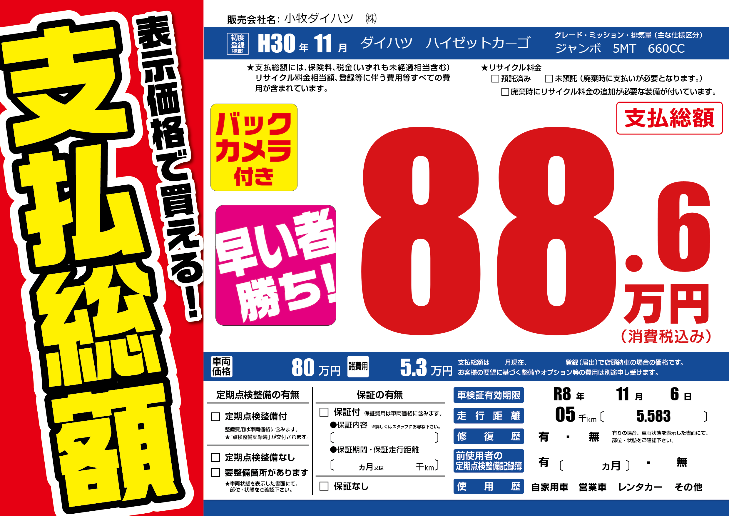 なし | 車検制限 | R8年11月6月 |