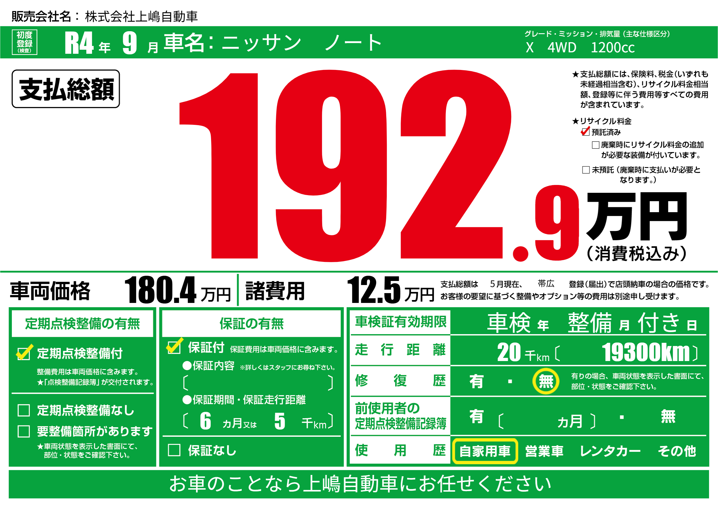 保証付き 保証内容(---) 6ヶ月または(5)千kmまで |