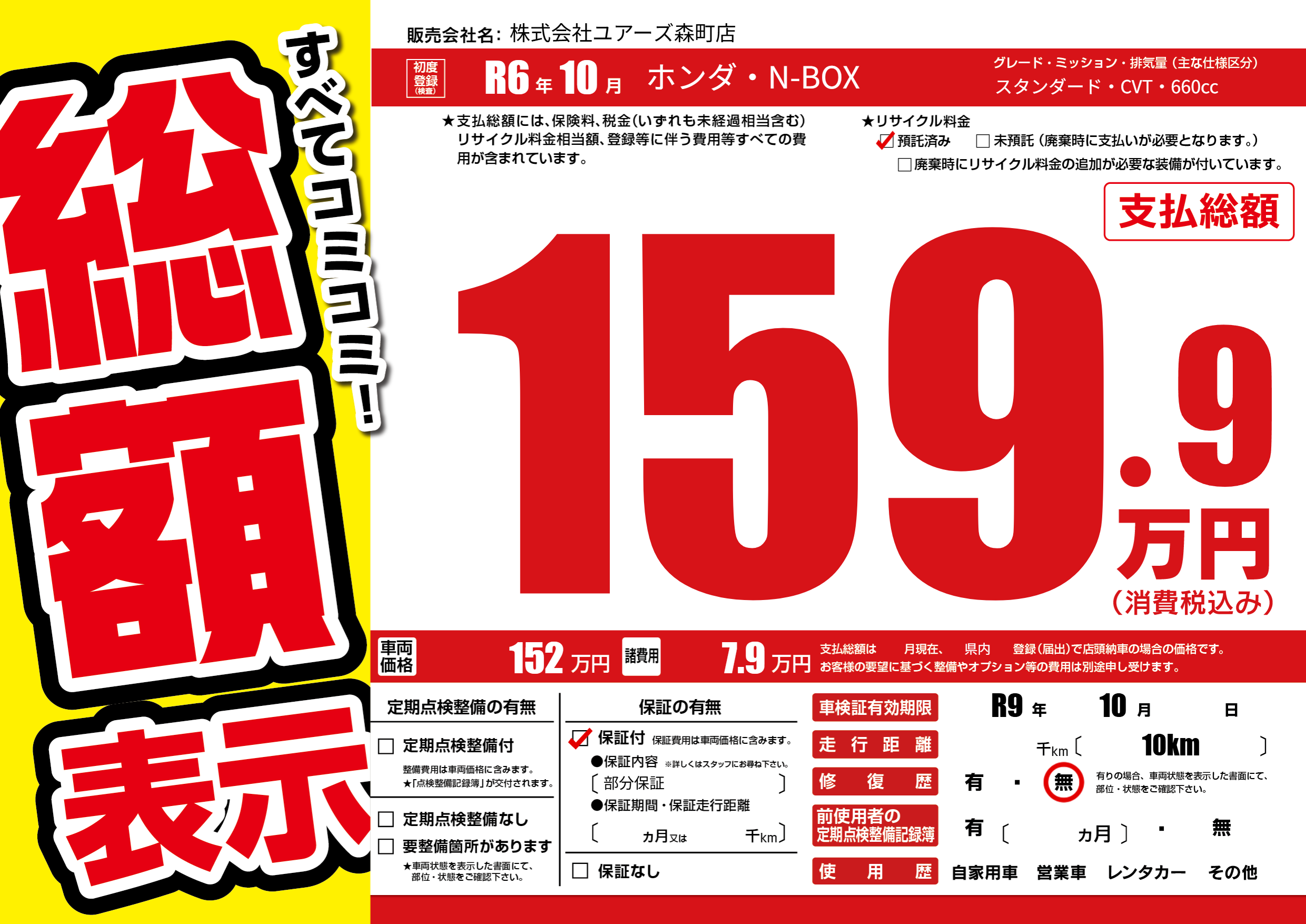 なし | 車検制限 | R9年10月---月 |