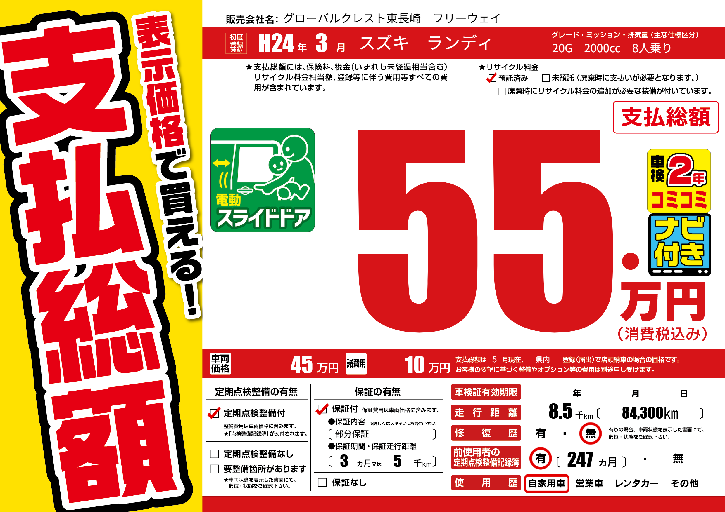 | 車名 | スズキ ランディ | グレード ミッション 排気量 |