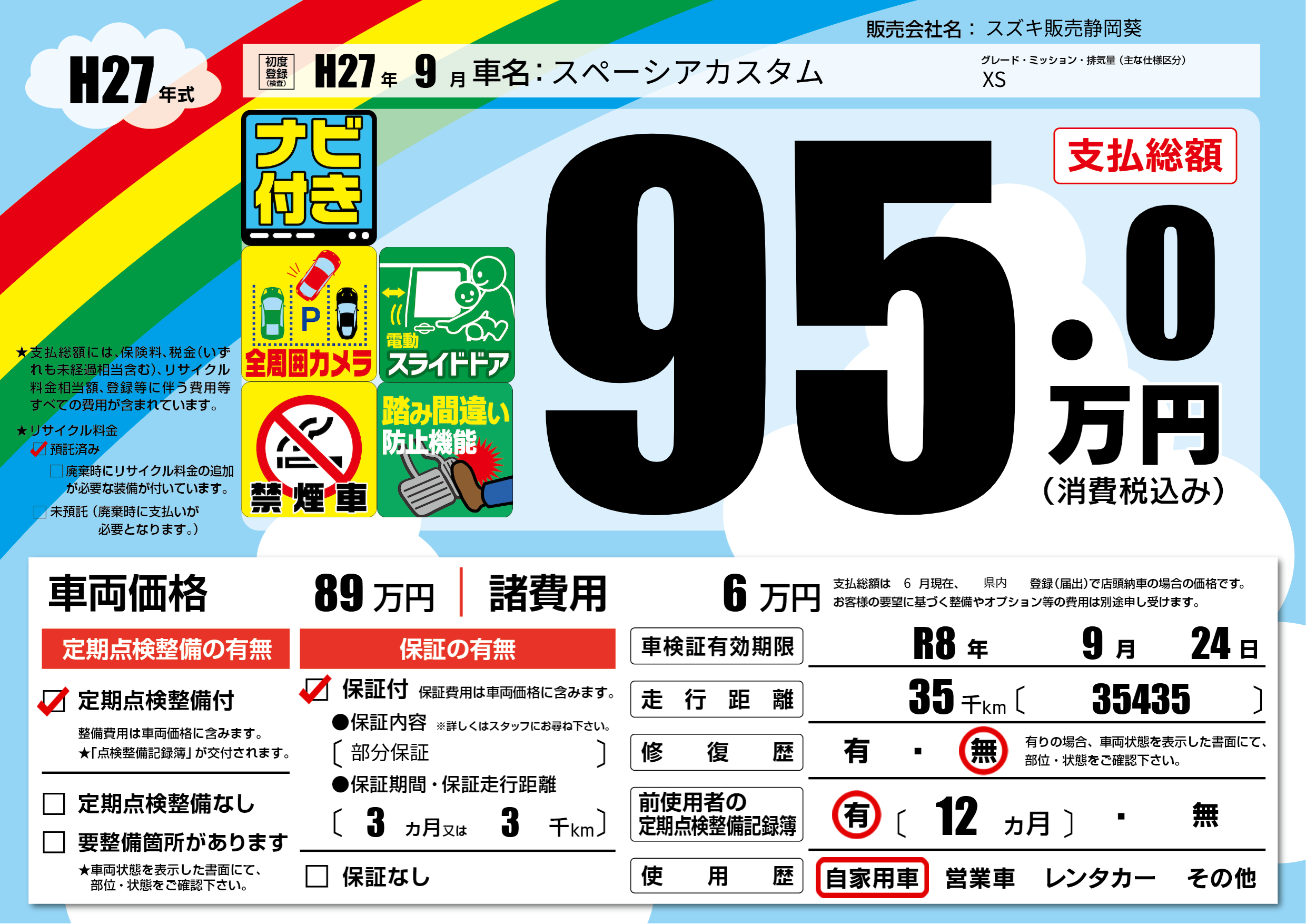 | 走行キロ | 3.5万km | 初年度登録 | H27年9月 |