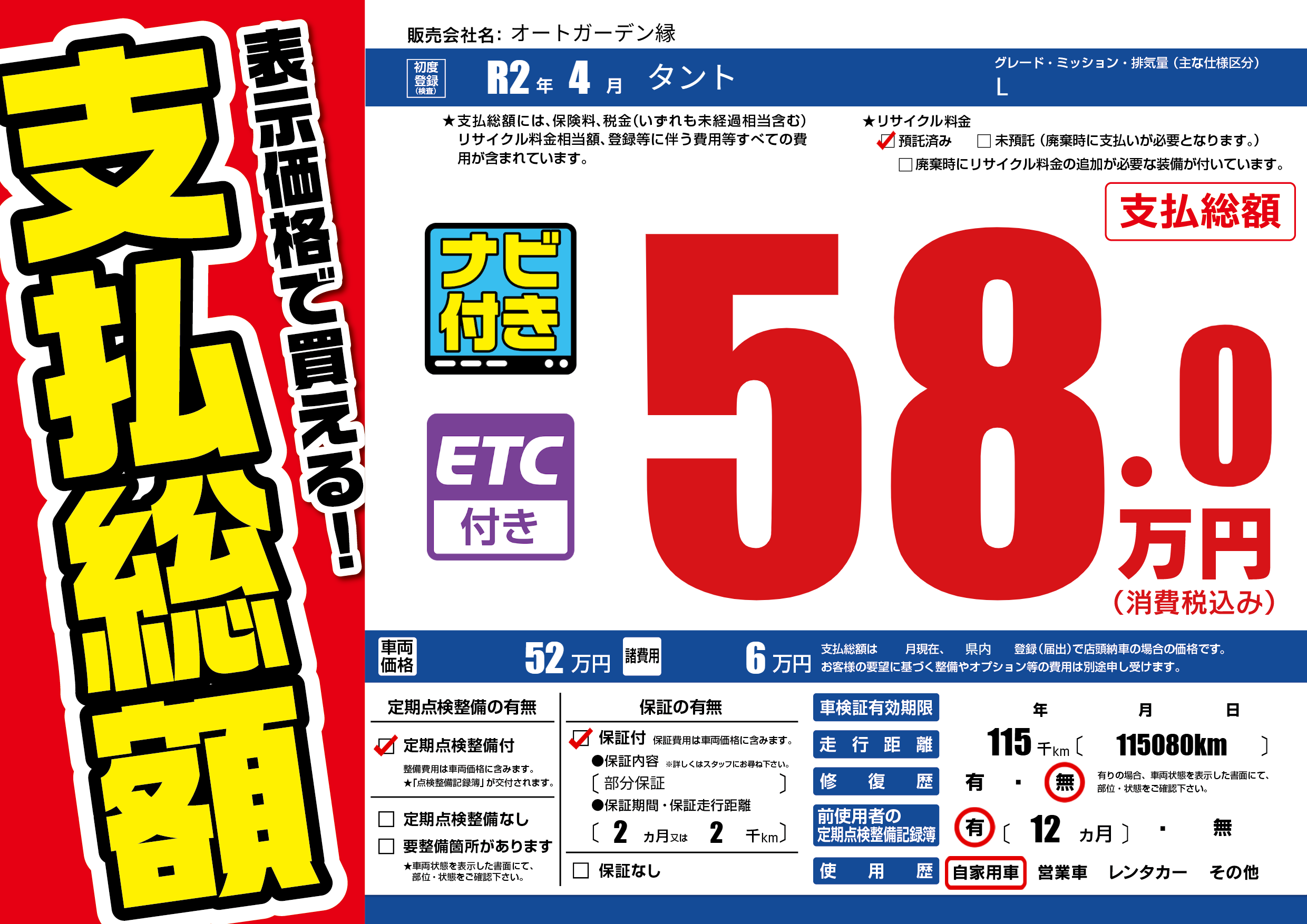 | 車検制限 | - 年 - 月 - 日 | ||