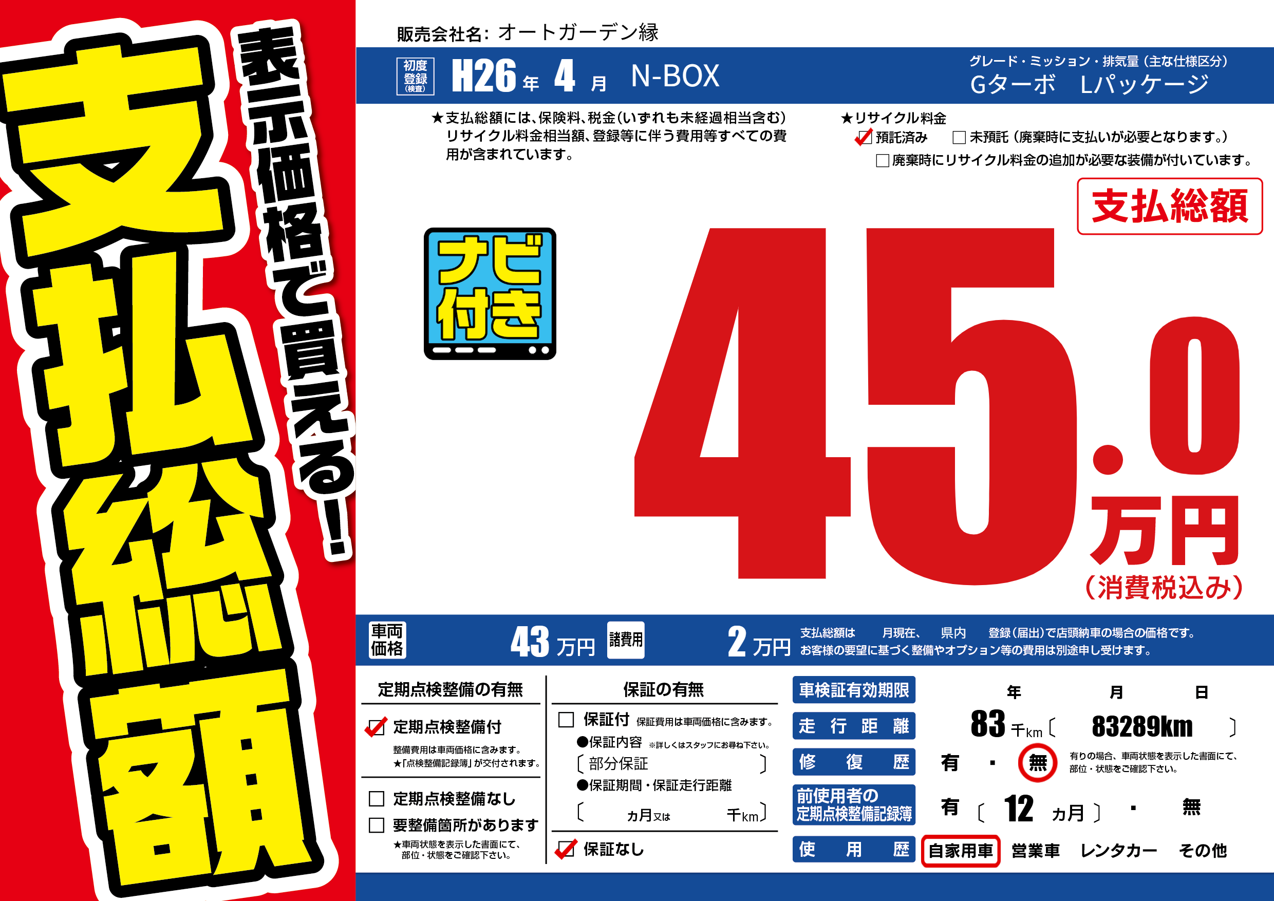 | 車検制限 | - 年 - 月 - 日 | ||