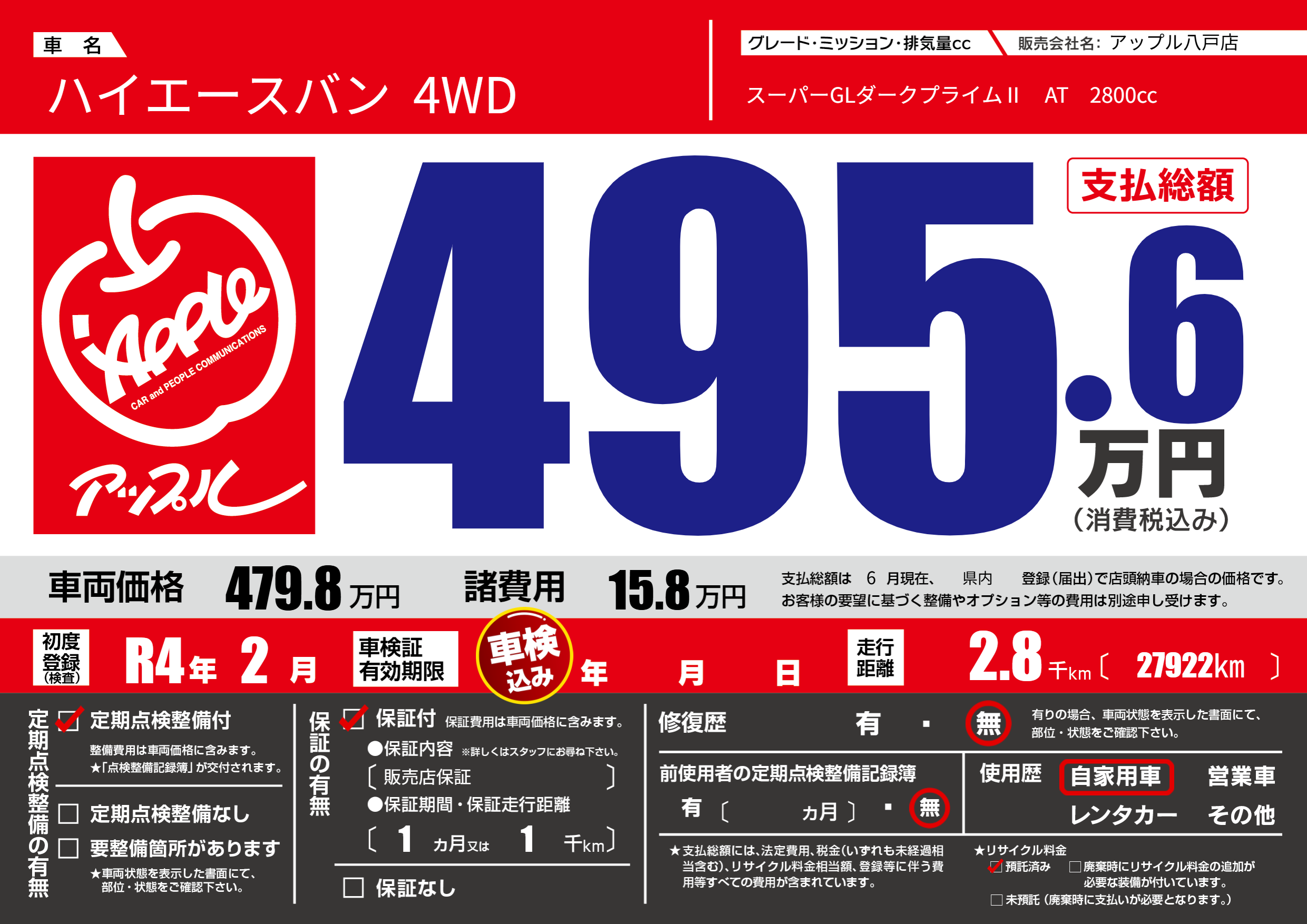 | 定期点検整備 | 定期点検整備あり | ||