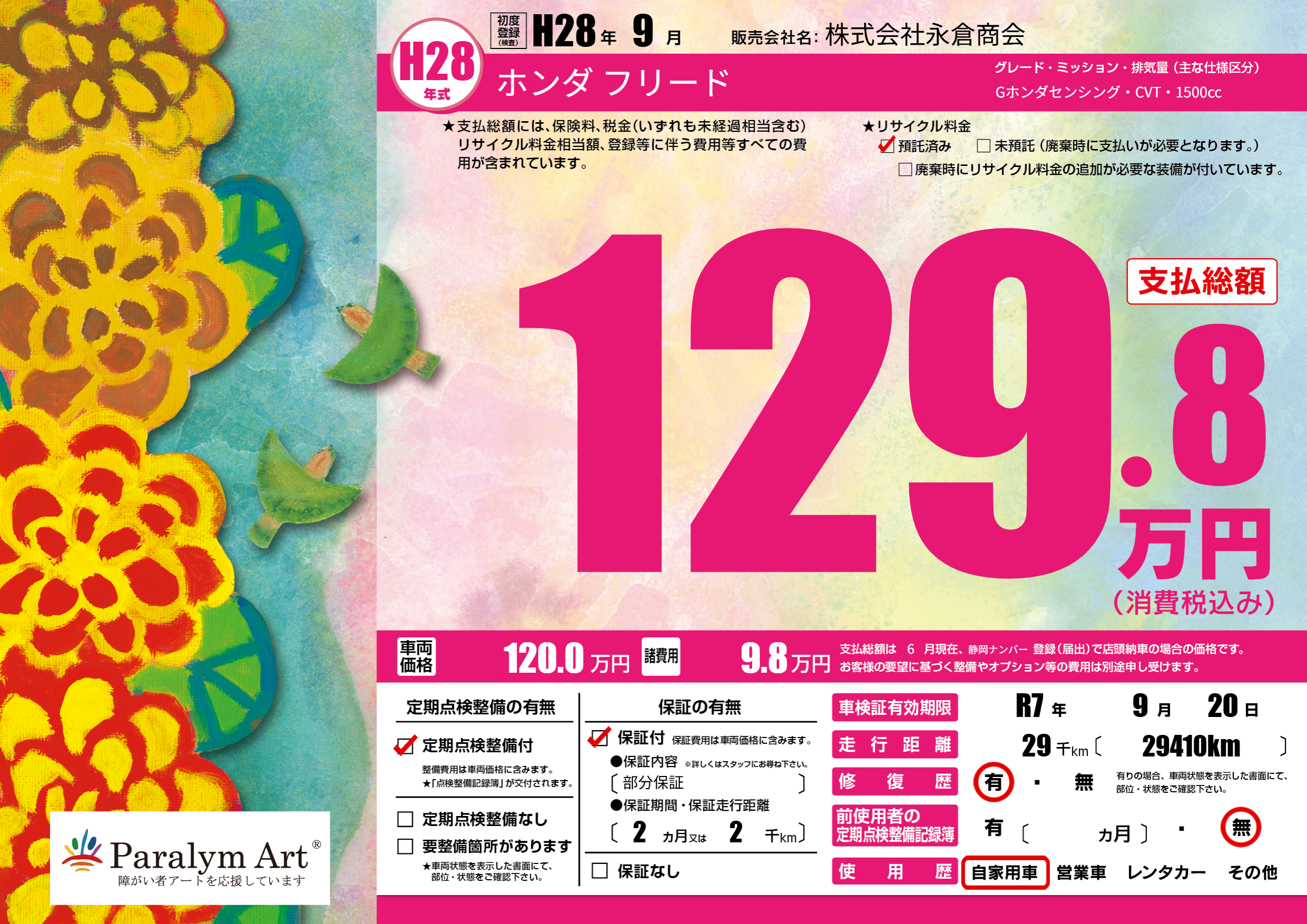 | 車名 | ホンダ フリード | グレード ミッション 排気量 |