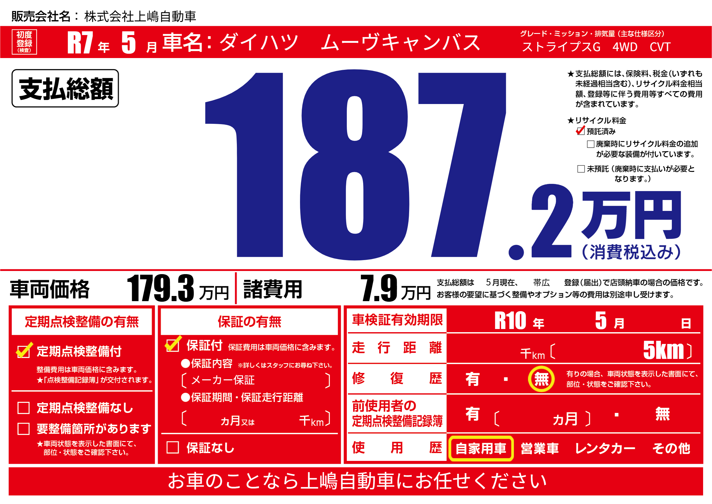 なし | 車検制限 | R10年5月---月 |