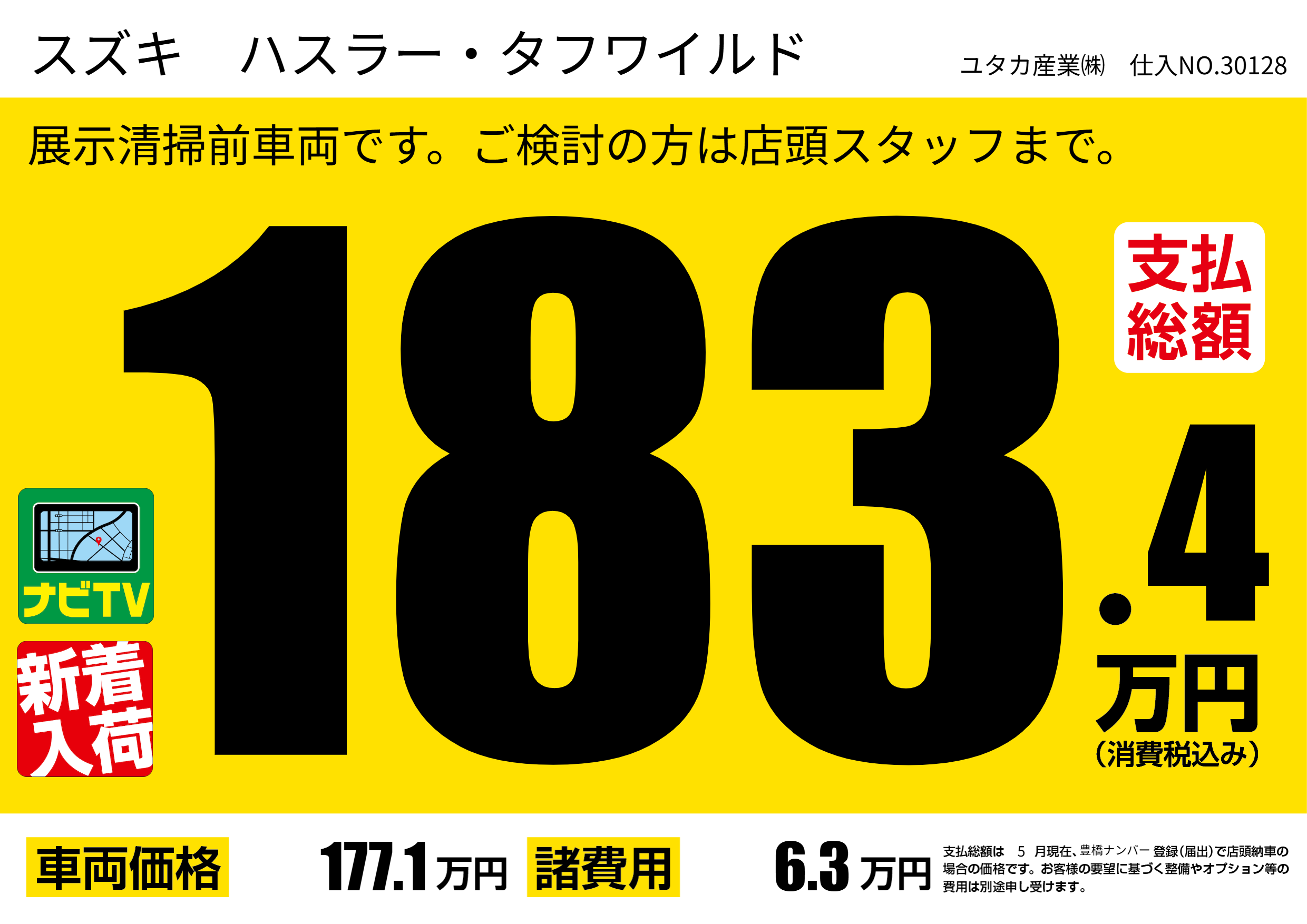 | 車名 | スズキ ハスラー・タフワイルド | グレード ミッション 排気量 |