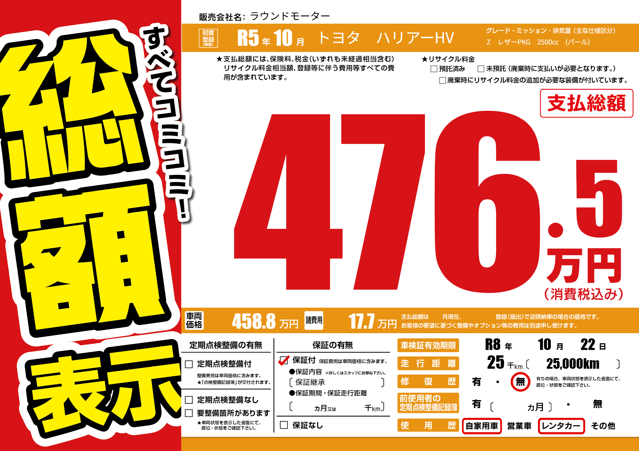 | 車検制限 | R8年 10月 22日 | ||