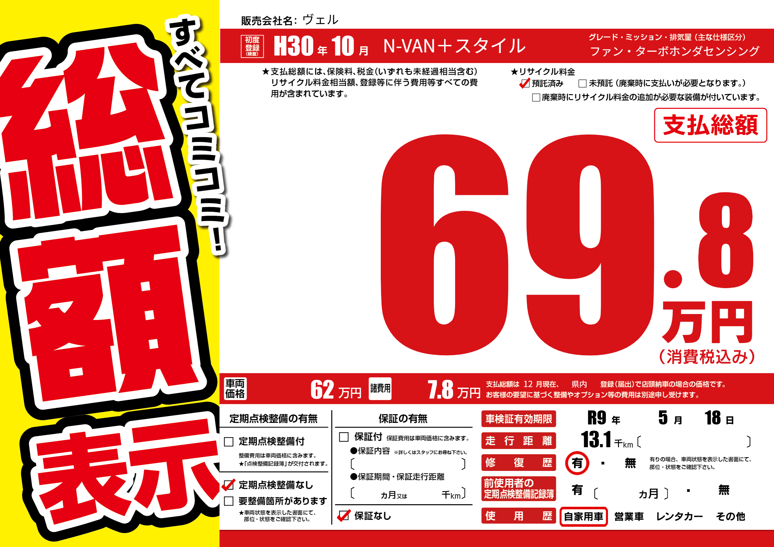 | 車名 | N-VAN+スタイル | グレード ミッション 排気量 |