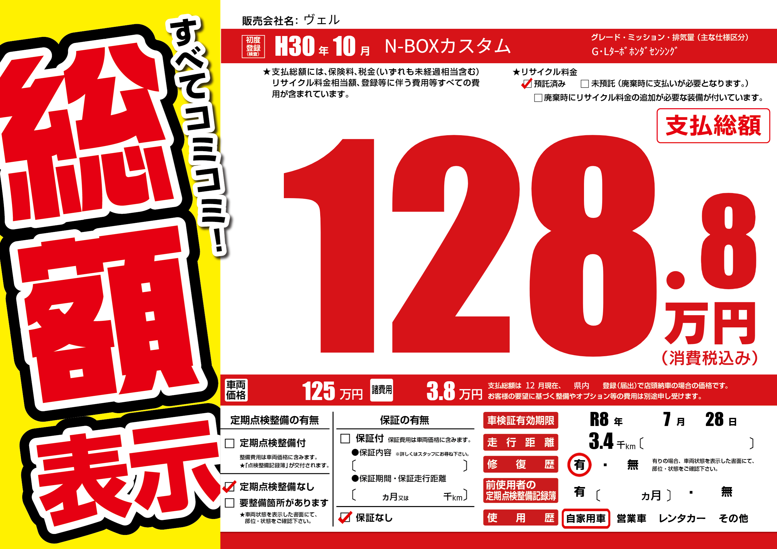 | 車名 | N-BOXカスタム | グレード ミッション 排気量 |