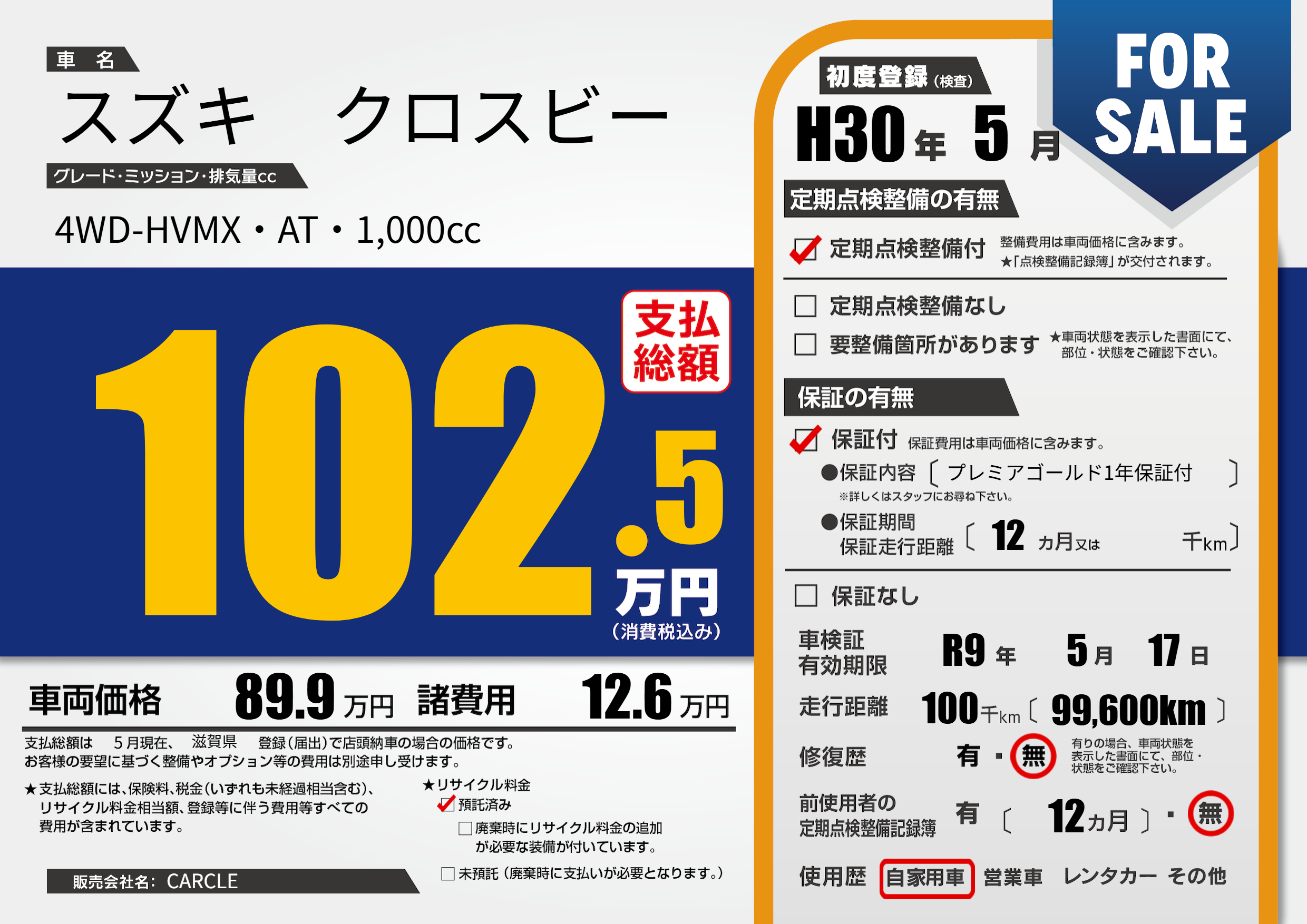 なし | 車検制限 | R9年5月17月 |