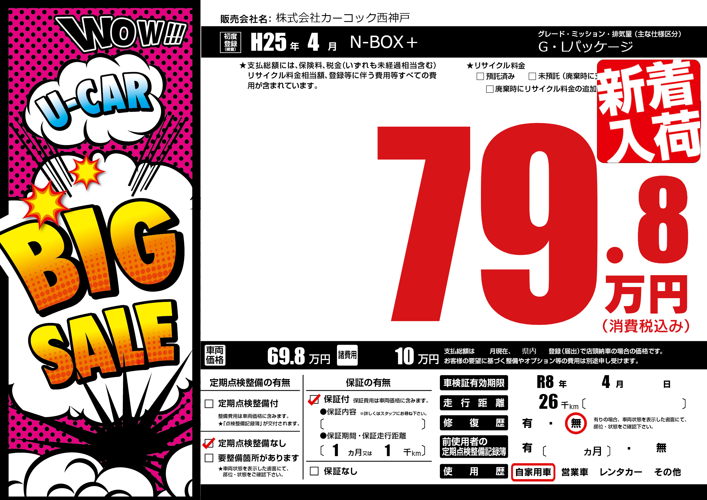 | 走行キロ | 2.6万km | 初年度登録 | H25年4月 |