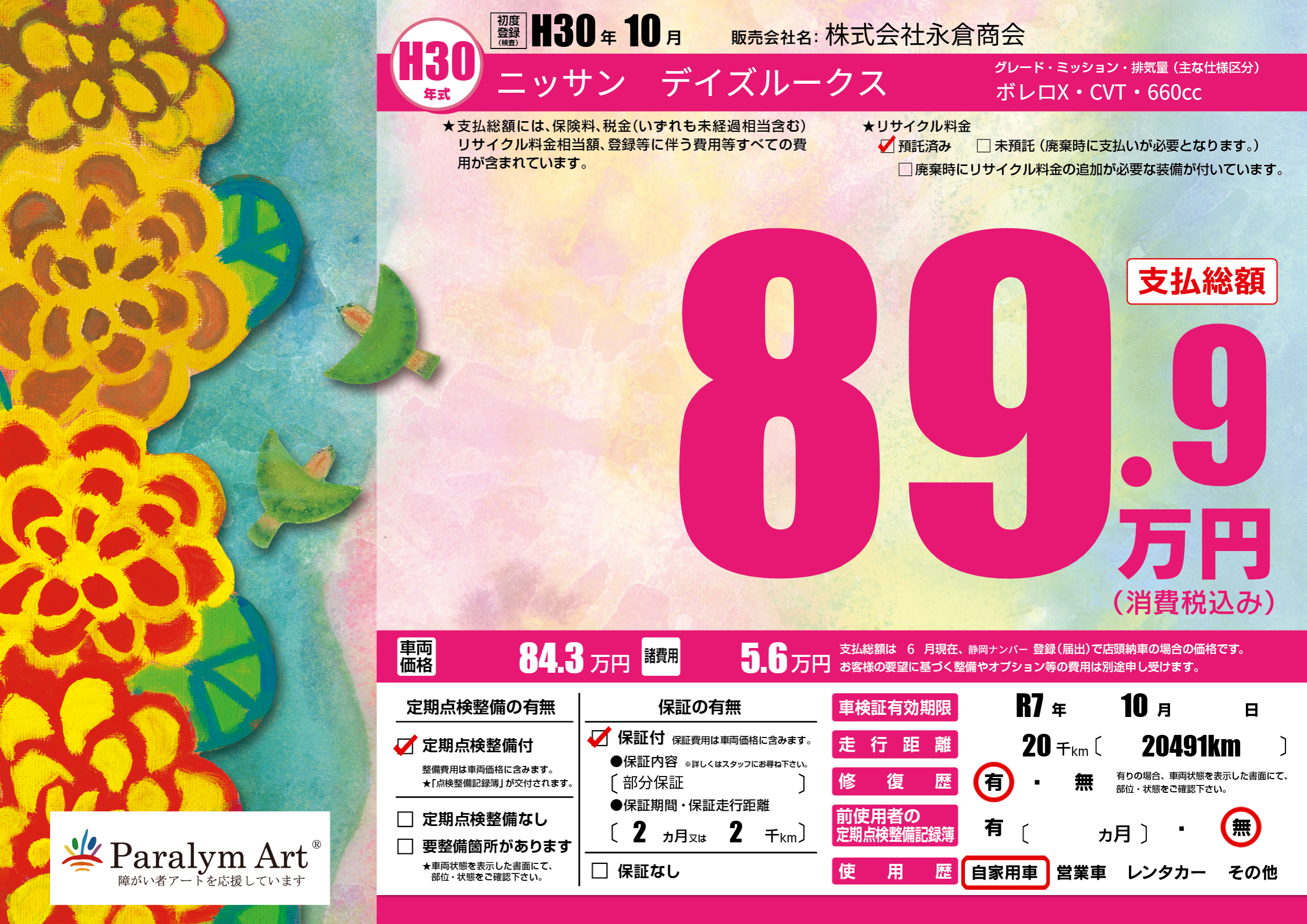 | 車検制限 | R7年 10月 - 日 | ||