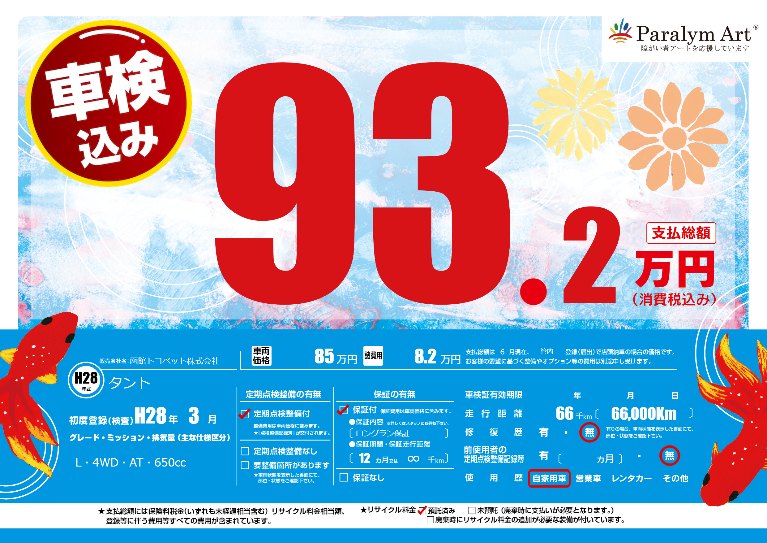 | 走行キロ | 6.6万km | 初年度登録 | H28年3月 |