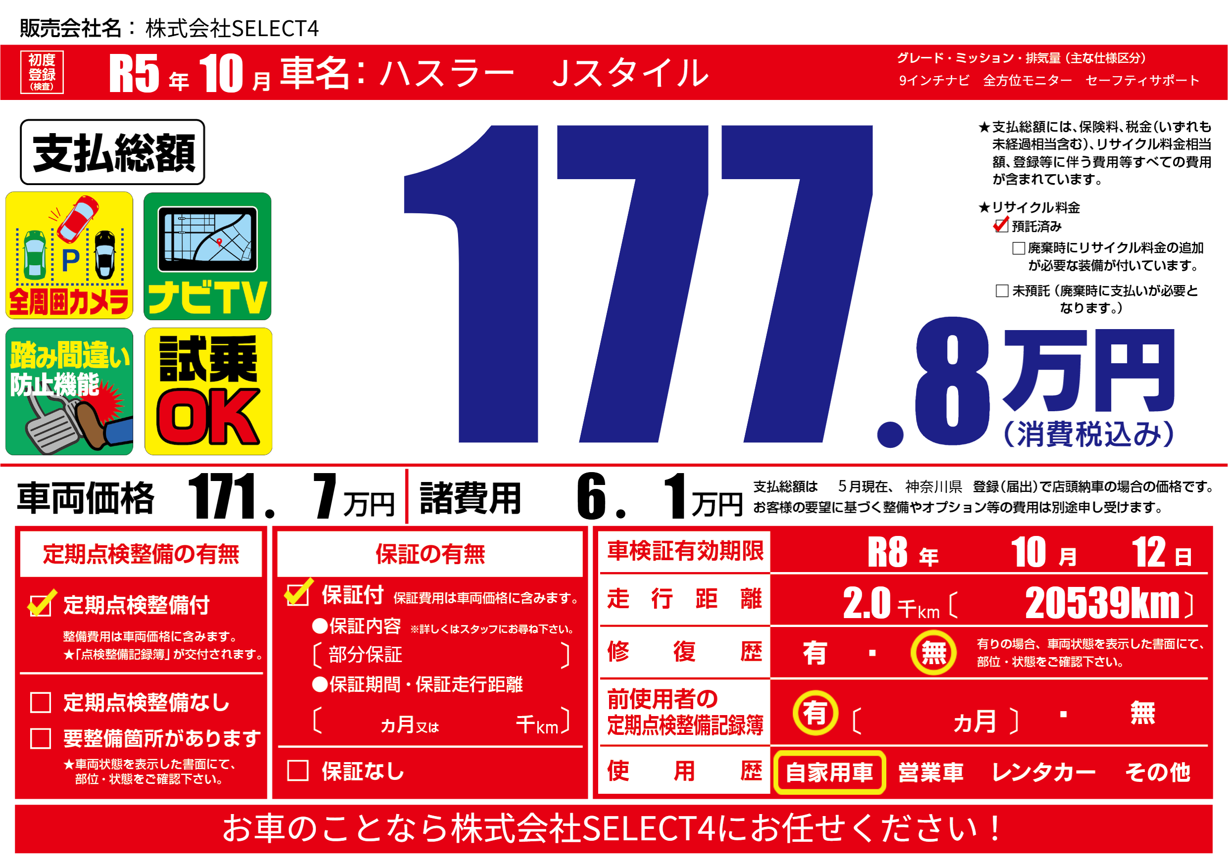 なし | 車検制限 | R8年10月12月 |