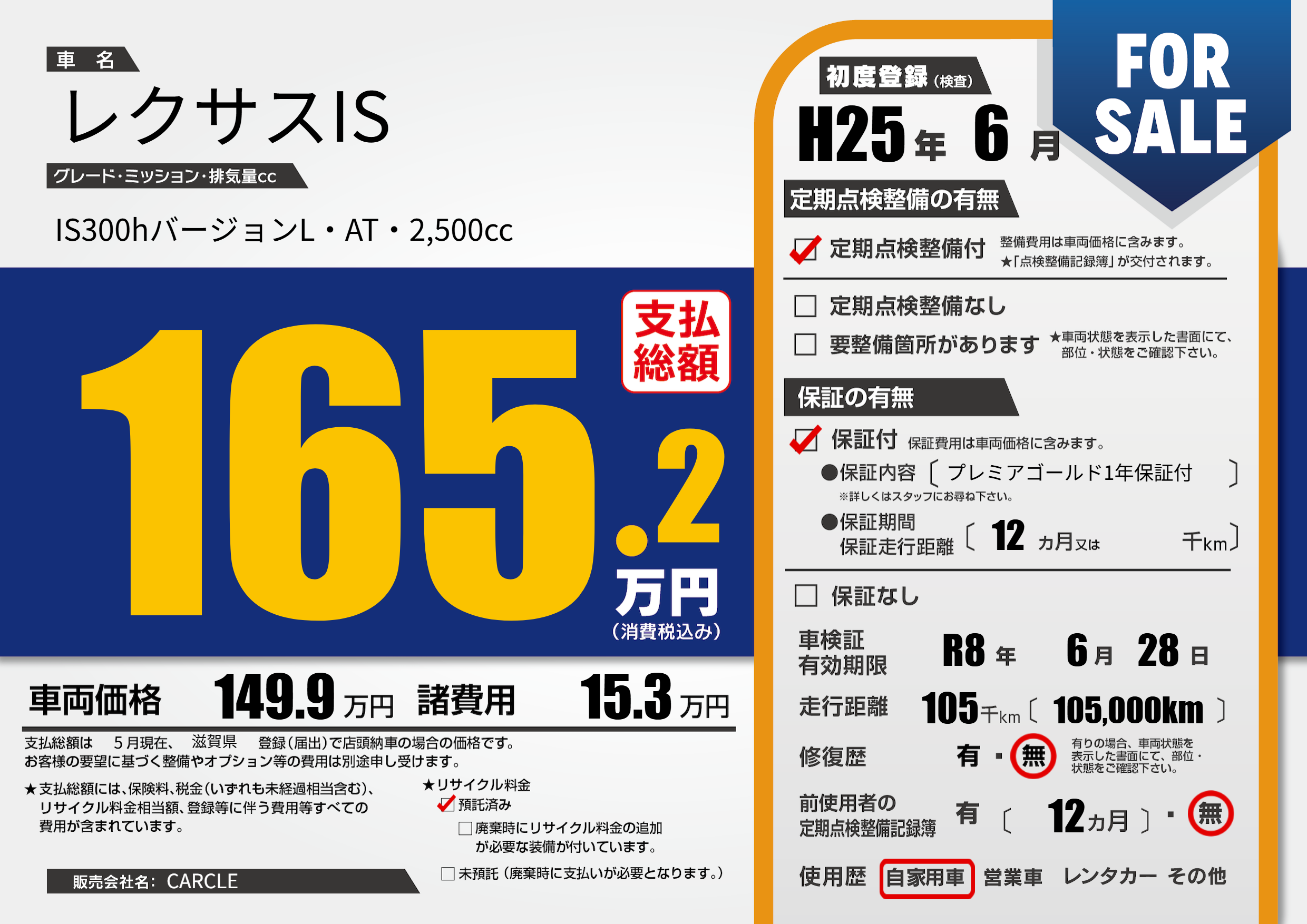 なし | 車検制限 | R8年6月28月 |