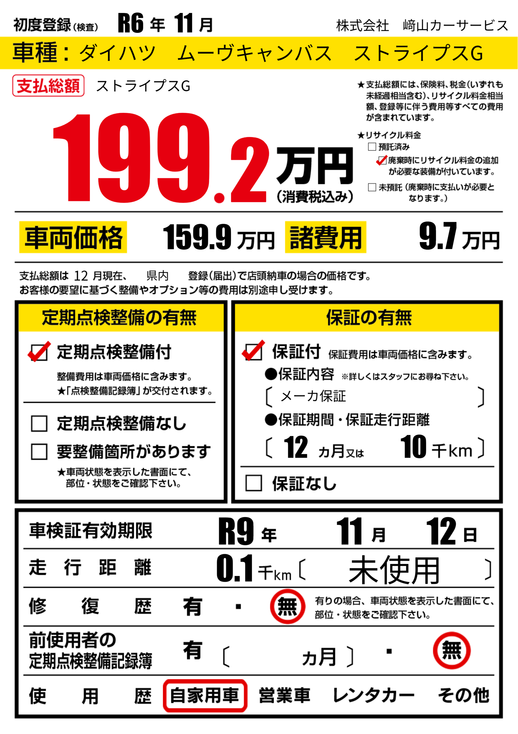| 走行キロ | - | 初年度登録 | R6年11月 |