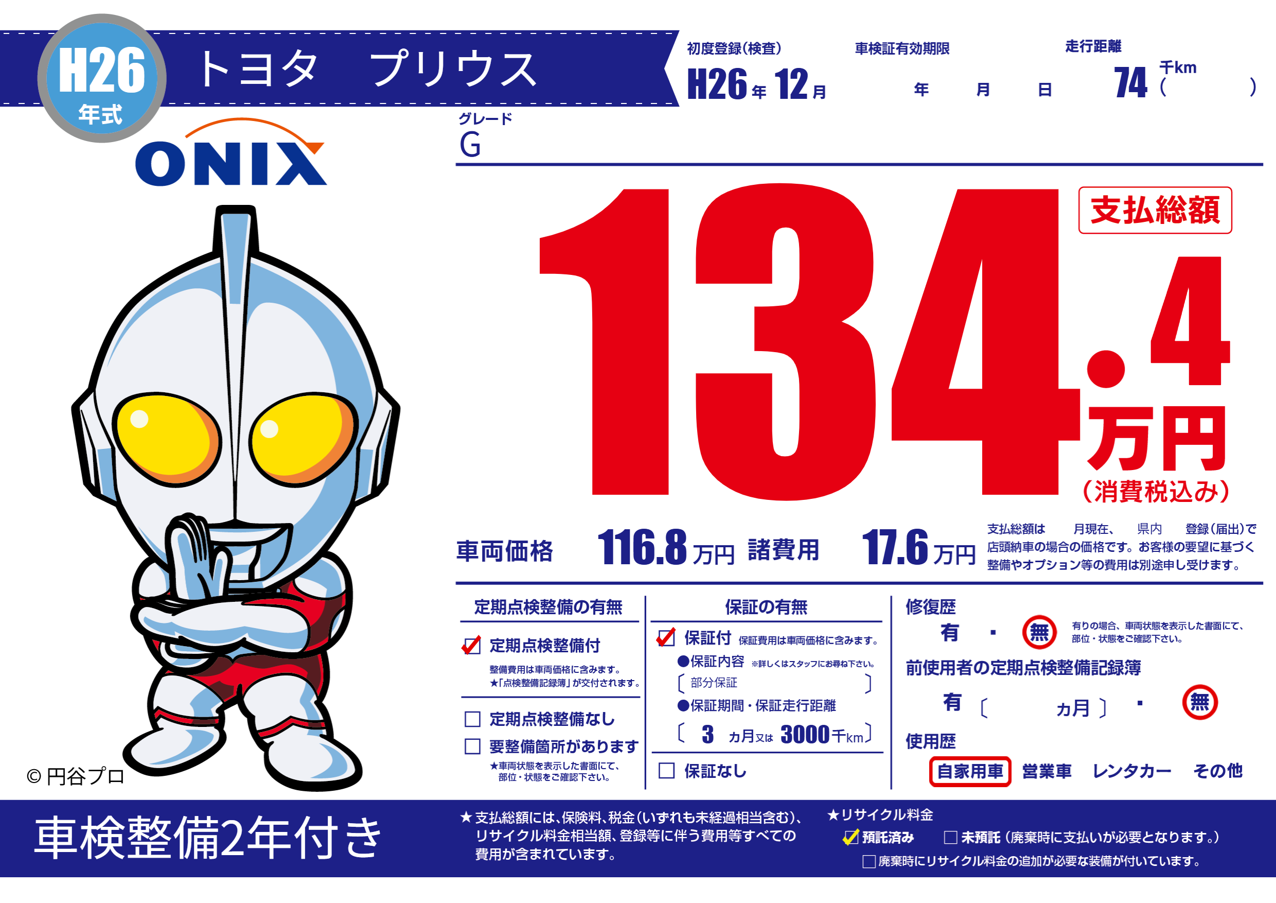 | 走行キロ | 7.4万km | 初年度登録 | H26年12月 |
