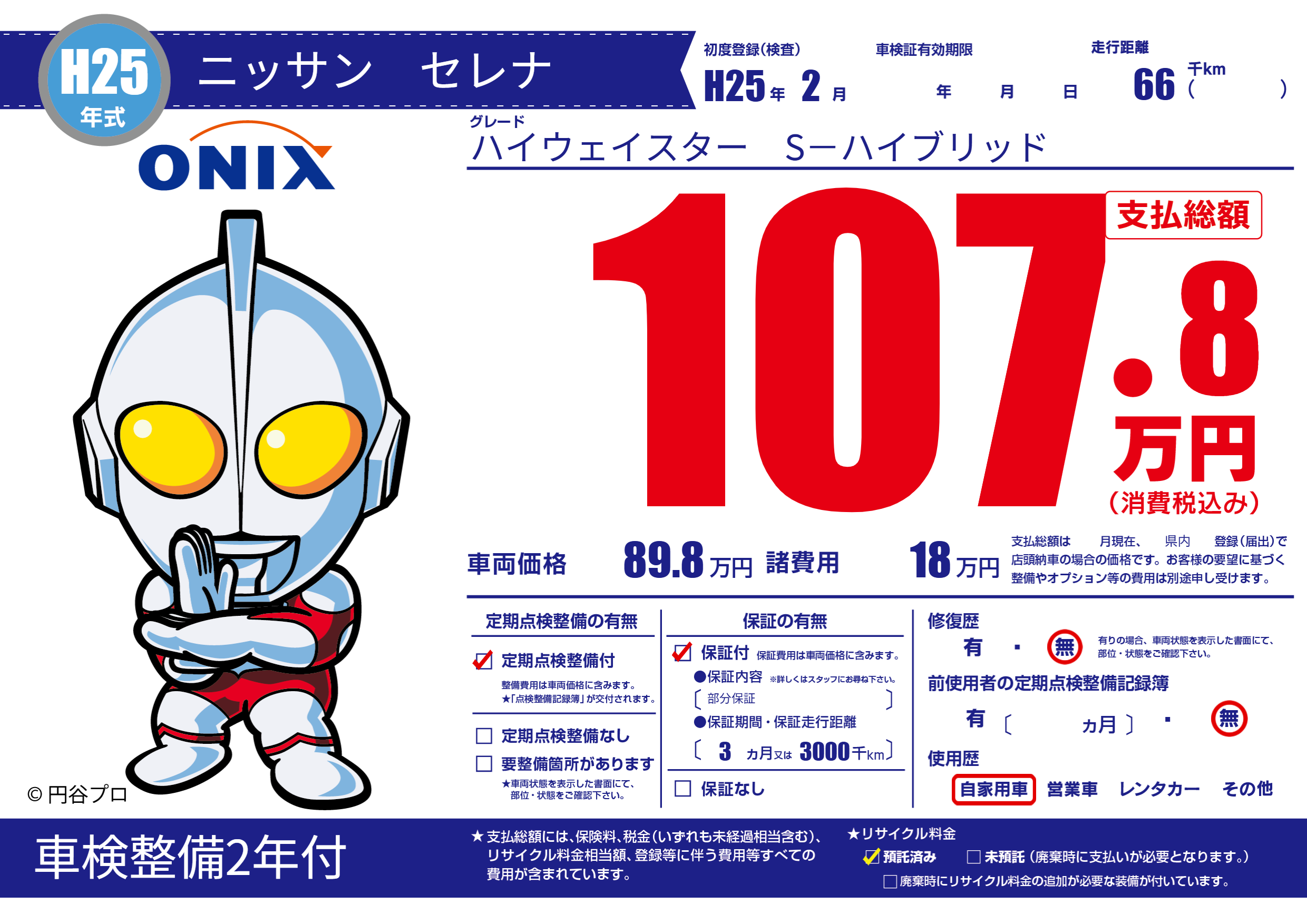 | 走行キロ | 6.6万km | 初年度登録 | H25年2月 |