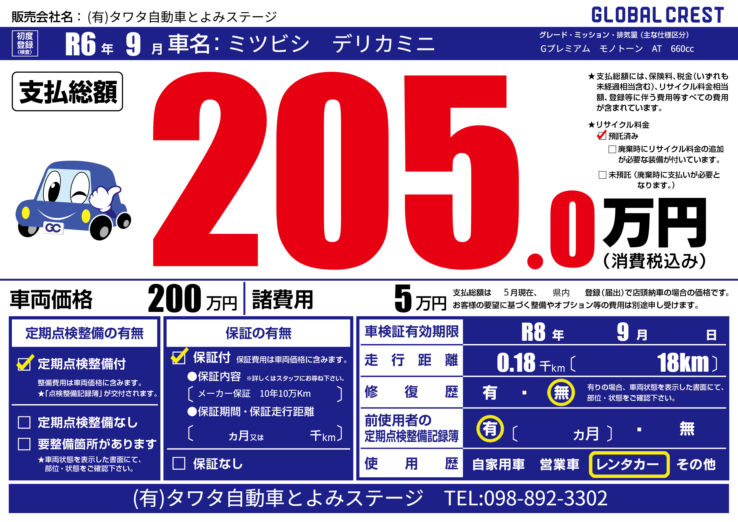 | 走行キロ | - | 初年度登録 | R6年9月 |