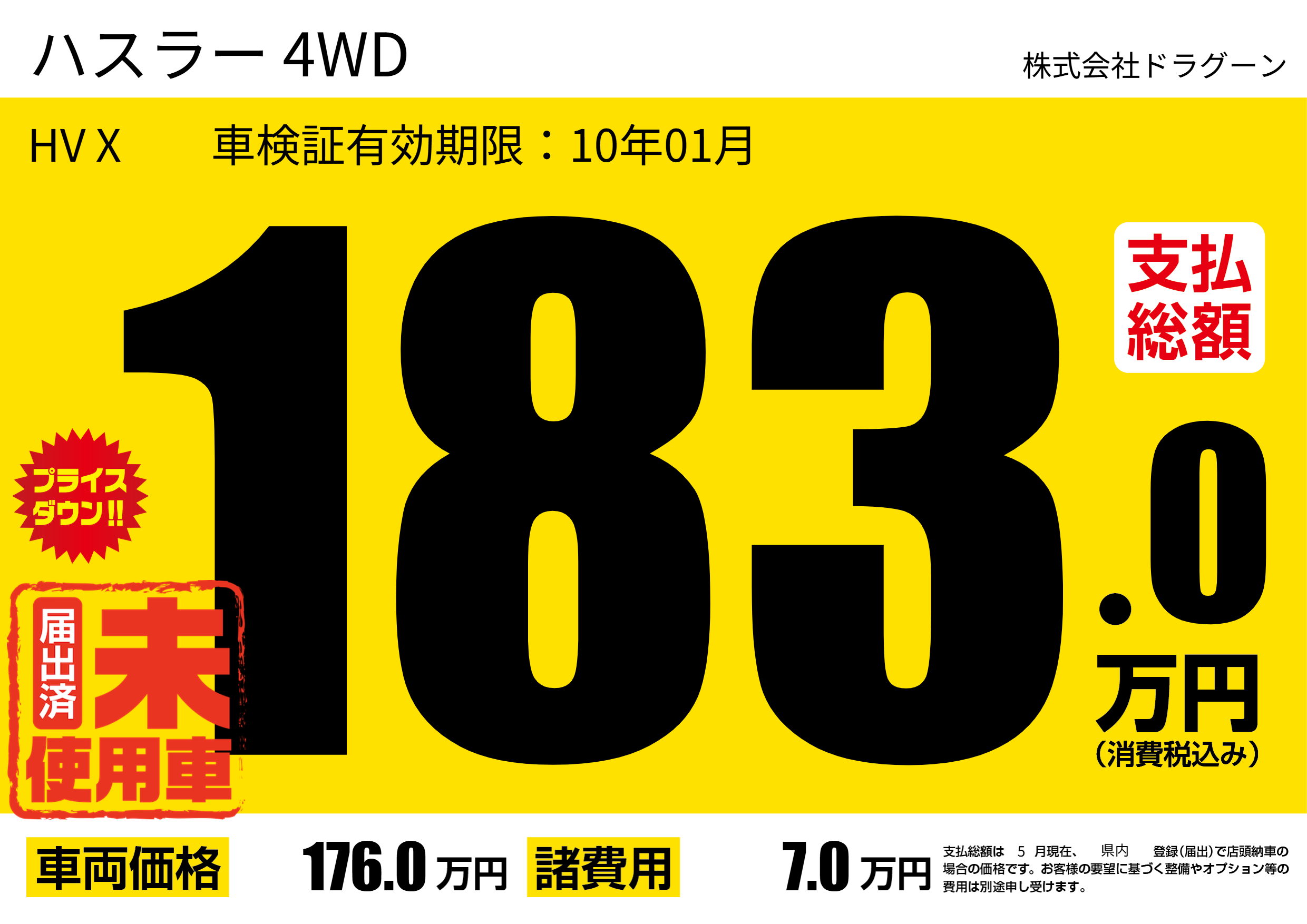 | 車名 | ハスラー 4WD | グレード ミッション 排気量 |