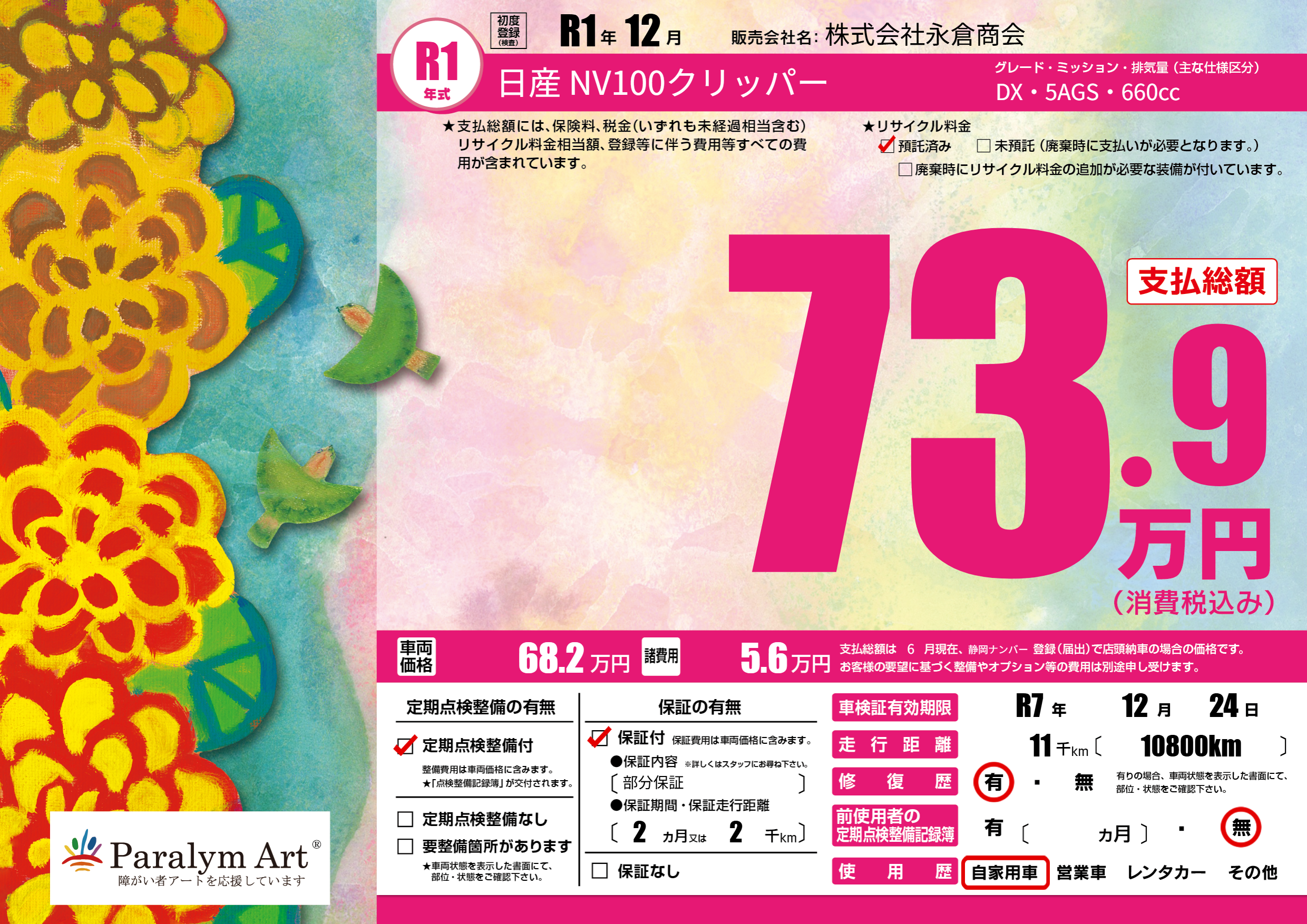 | 車名 | 日産 NV100クリッパー | グレード ミッション 排気量 |
