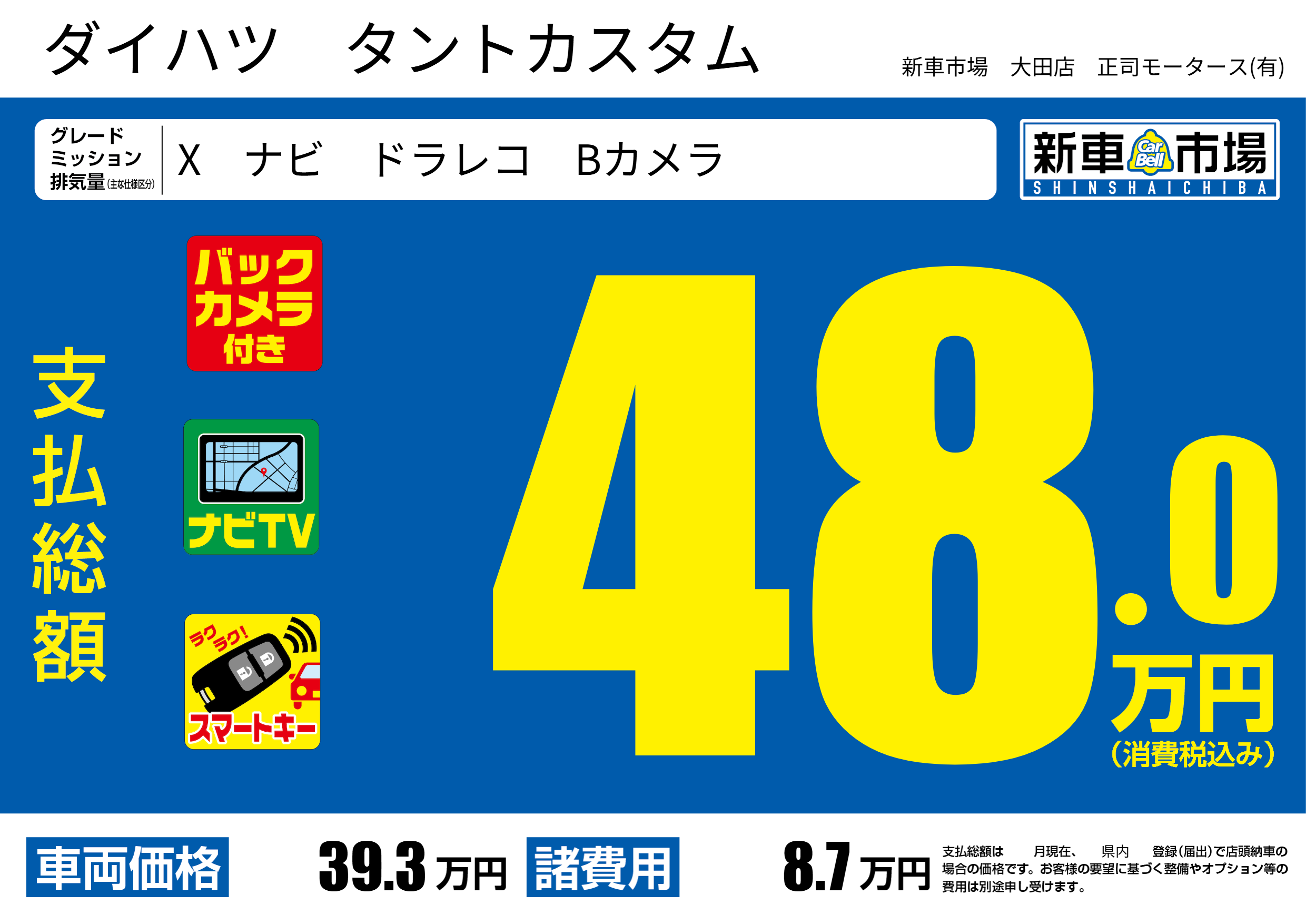 | 車名 | ダイハツ タントカスタム | グレード ミッション 排気量 |