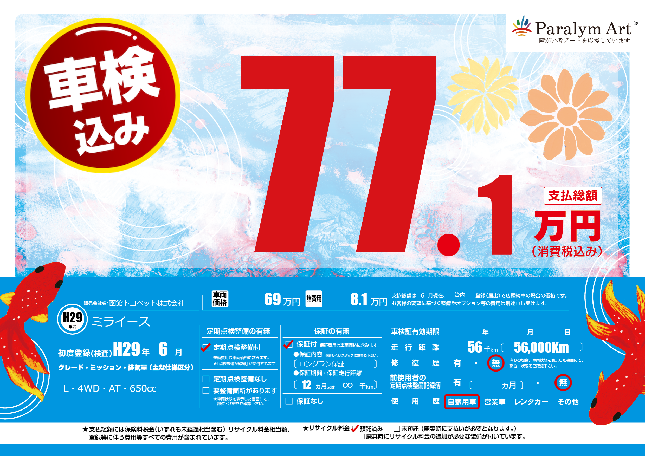 | 車名 | ミライース | グレード ミッション 排気量 |