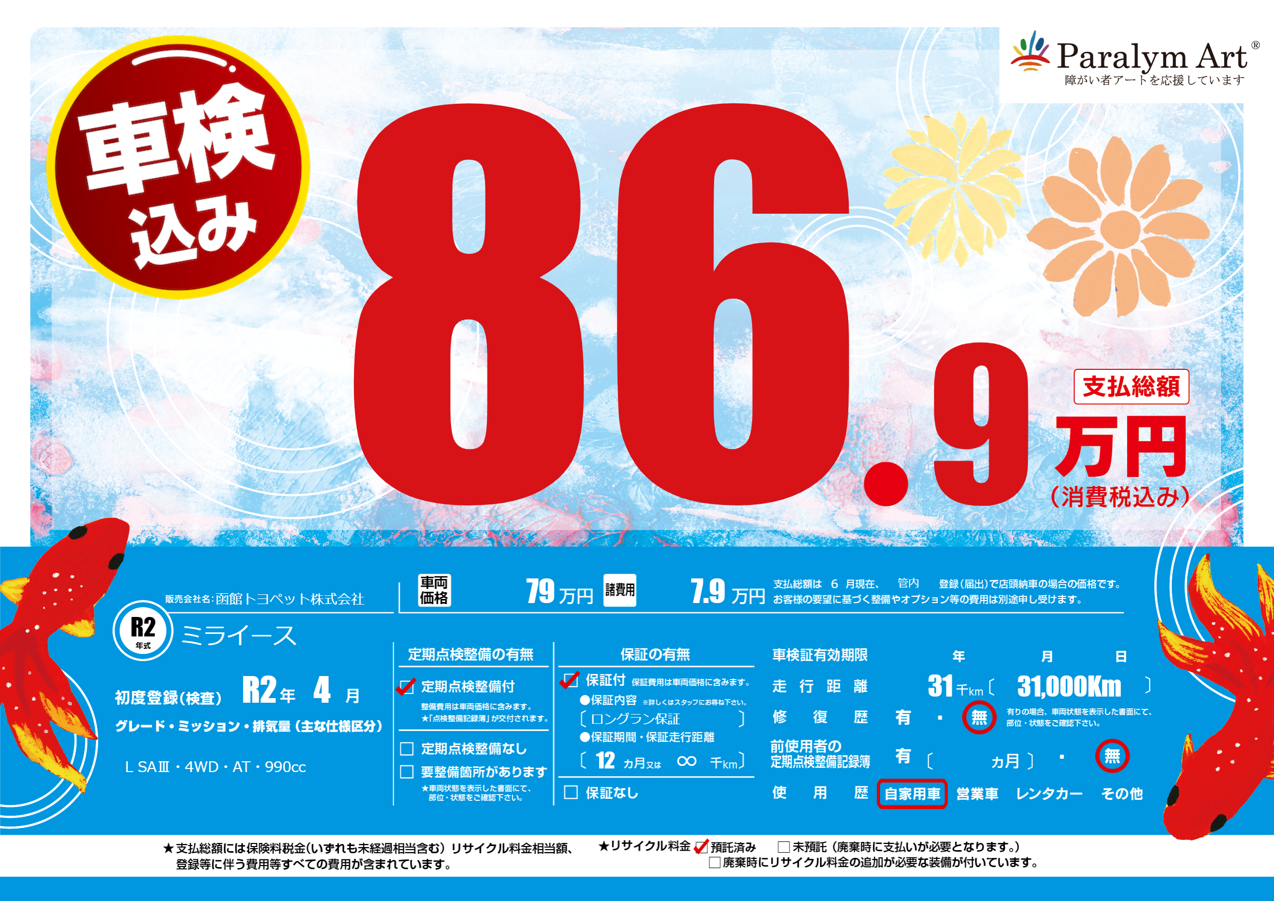 | 走行キロ | 3.1万km | 初年度登録 | R2年4月 |