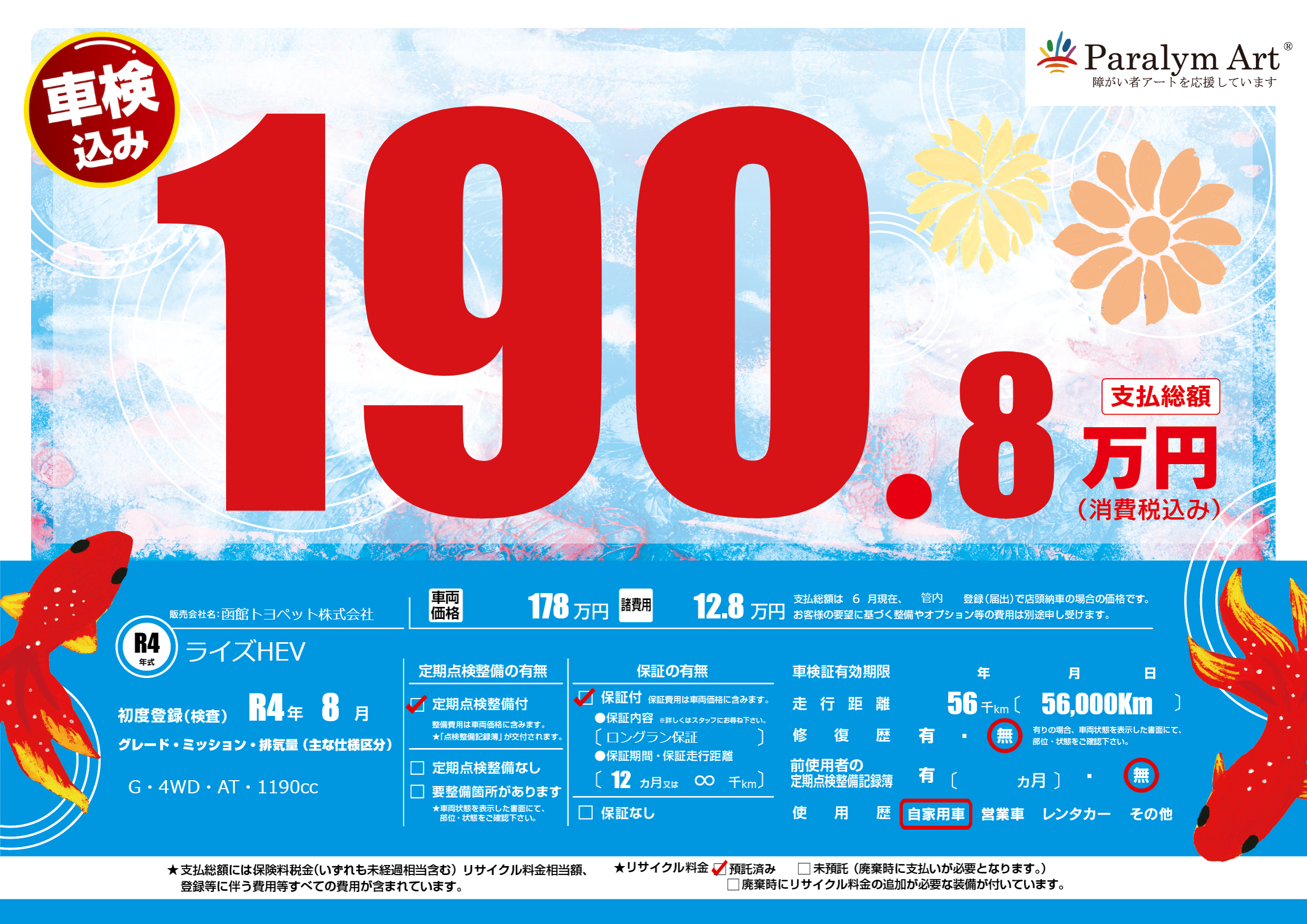 | 走行キロ | 5.6万km | 初年度登録 | R4年8月 |