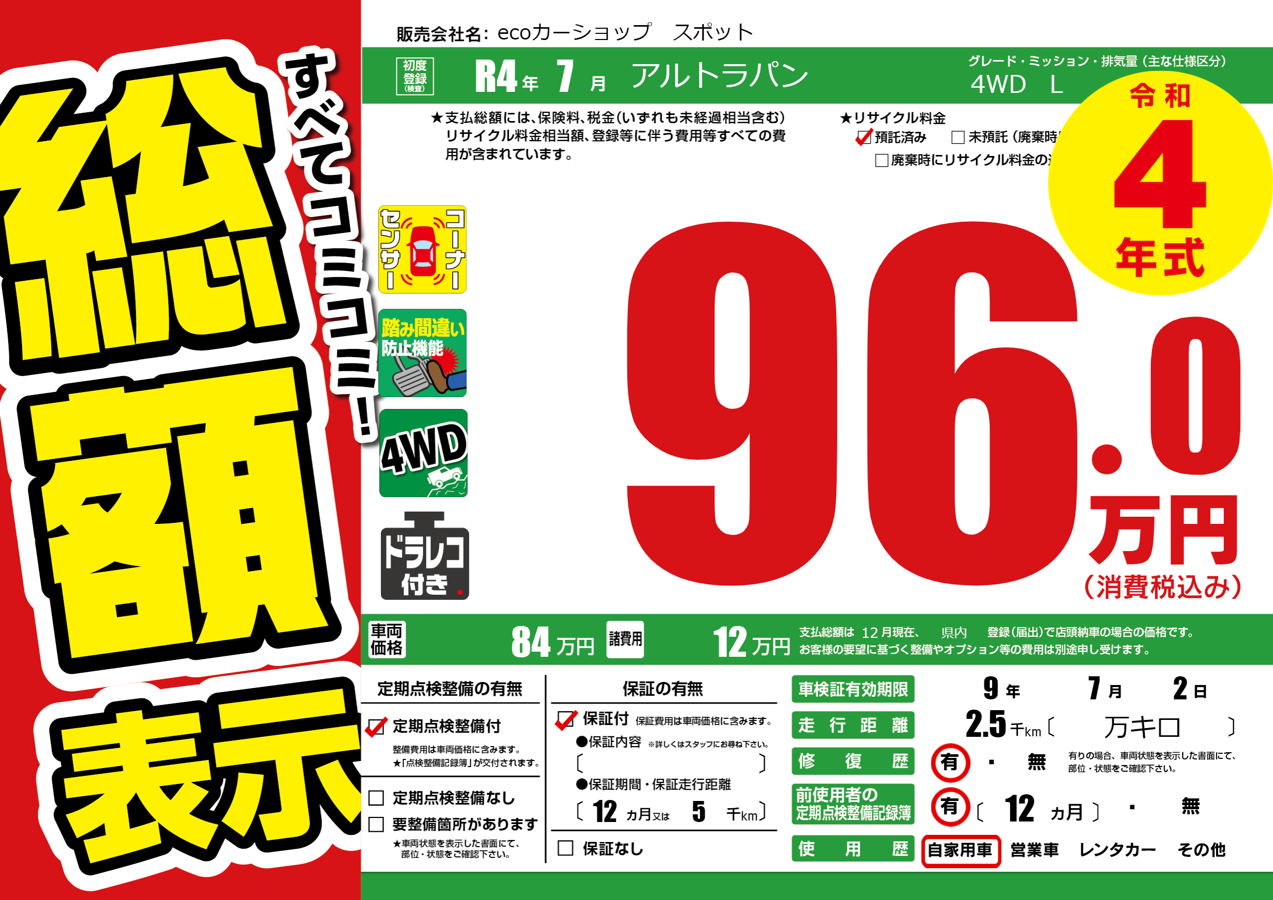 保証付き 保証内容(---) 12ヶ月または(5)千kmまで |