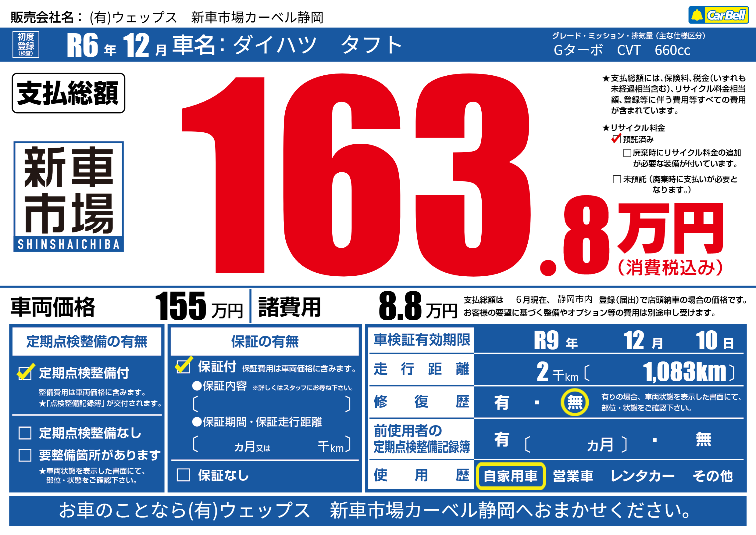 | 車検制限 | R9年 12月 10日 | ||