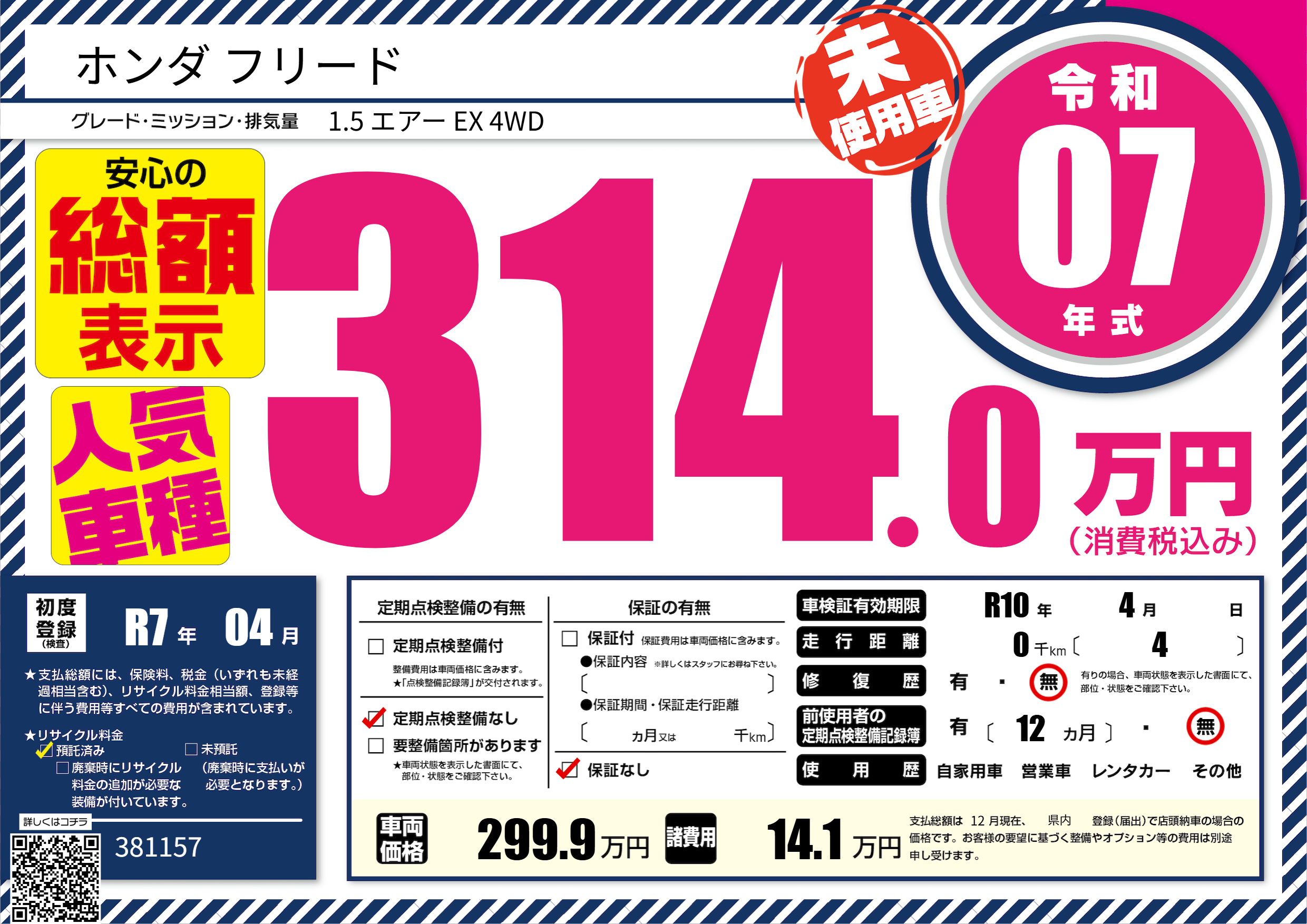 | 走行キロ | - | 初年度登録 | R7年04月 |