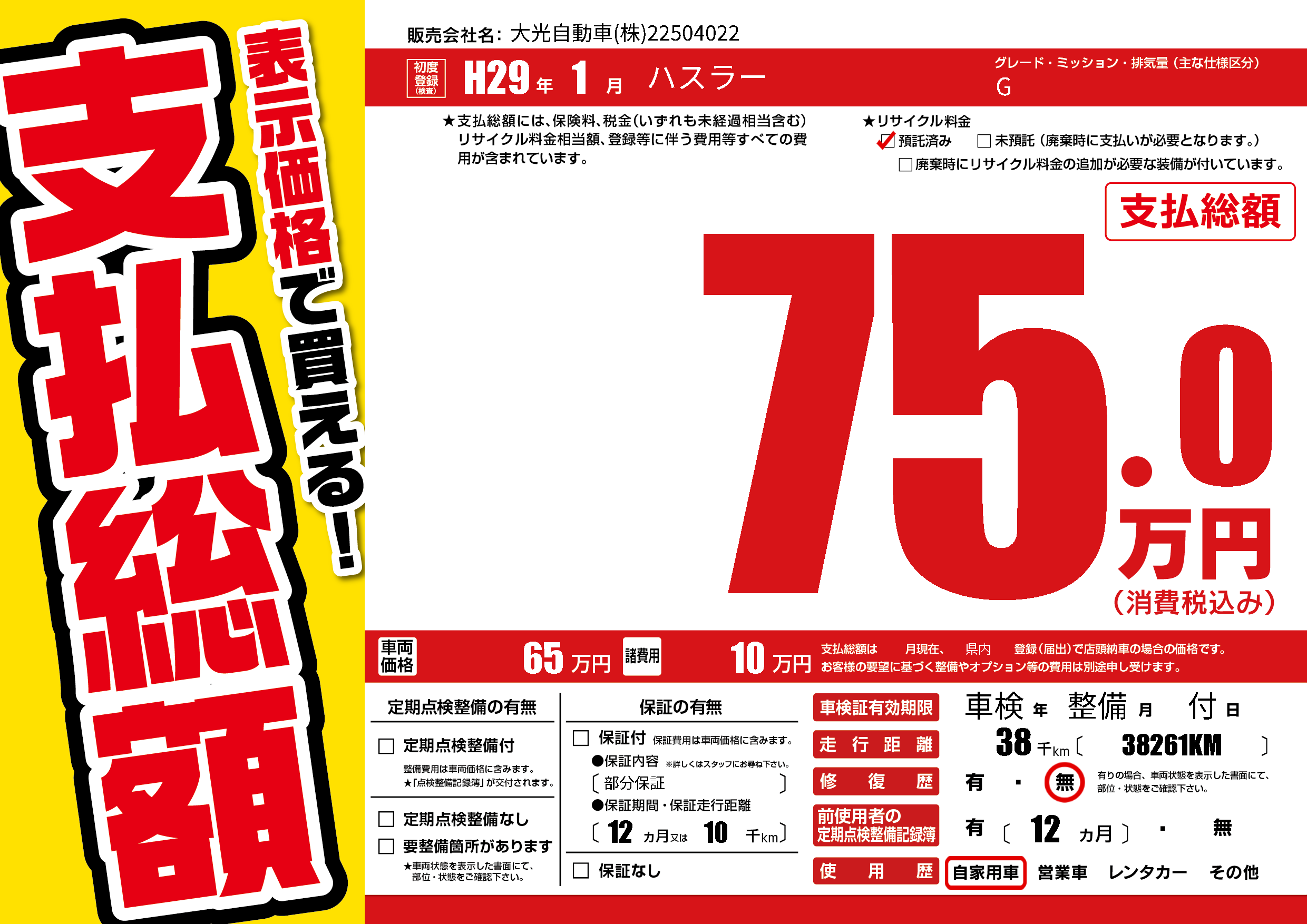 | 走行キロ | 3.8万km | ||