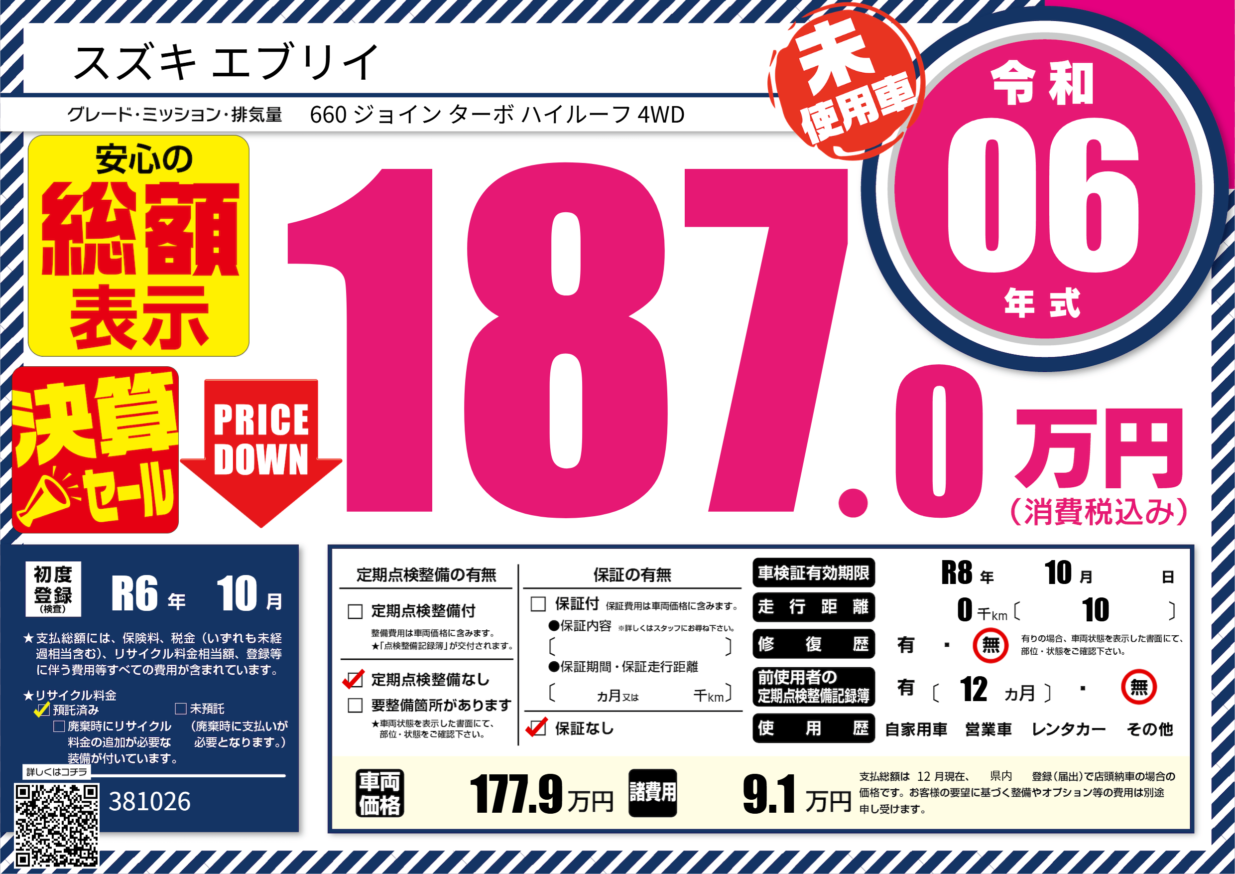 | 走行キロ | - | 初年度登録 | R6年10月 |