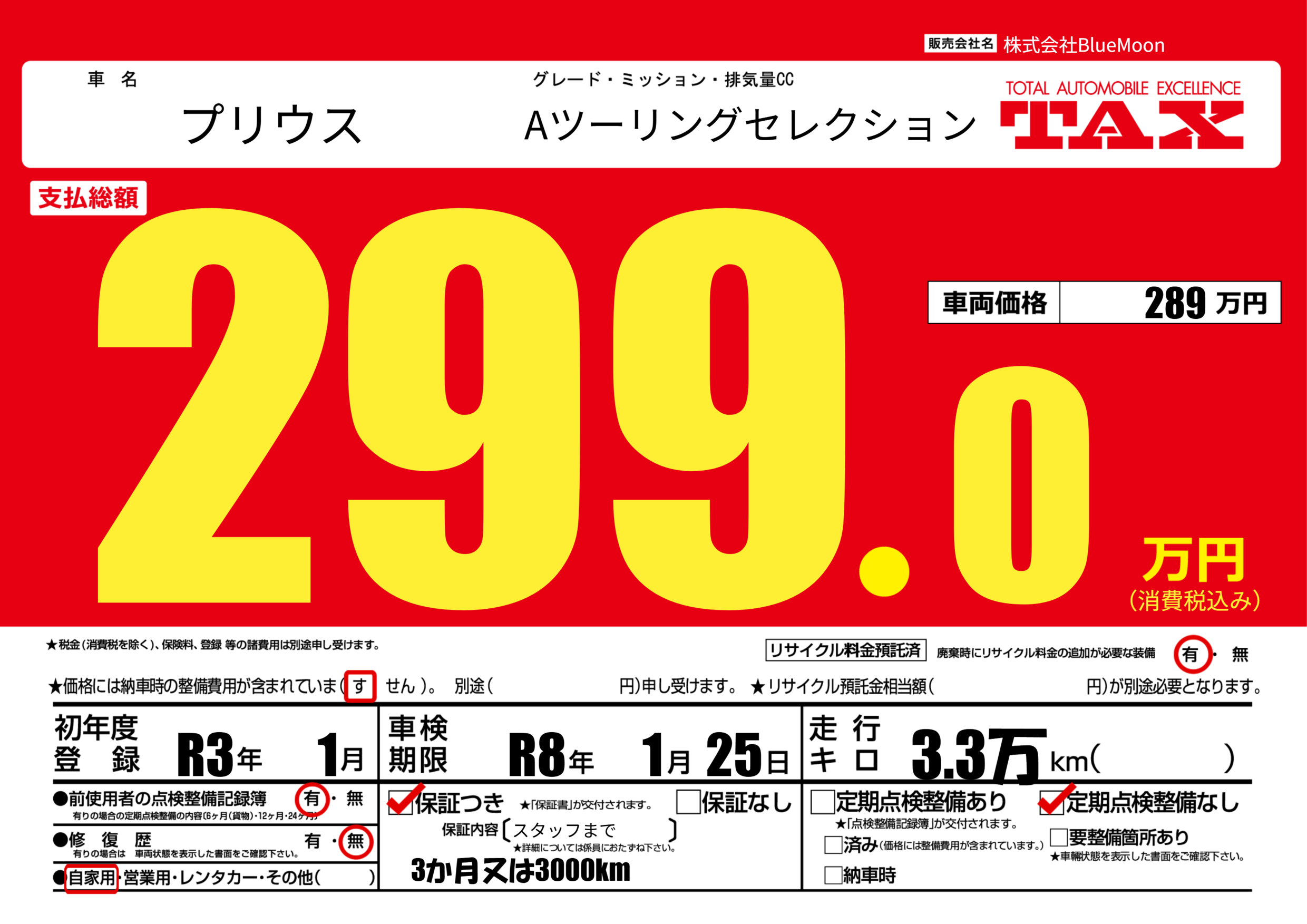 | 車名 | プリウス | グレード ミッション 排気量 |