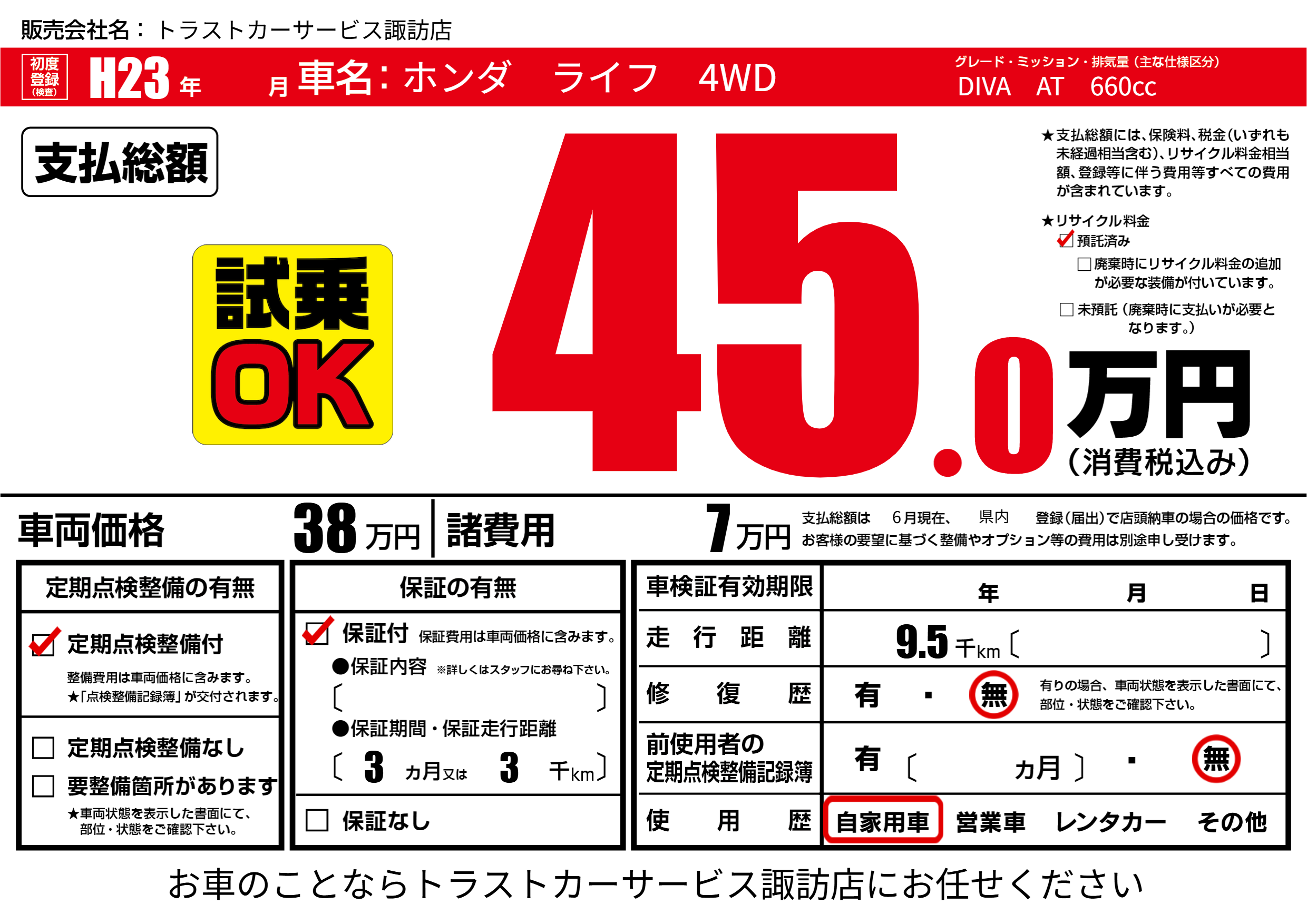 | 定期点検整備 | 定期点検整備あり | ||